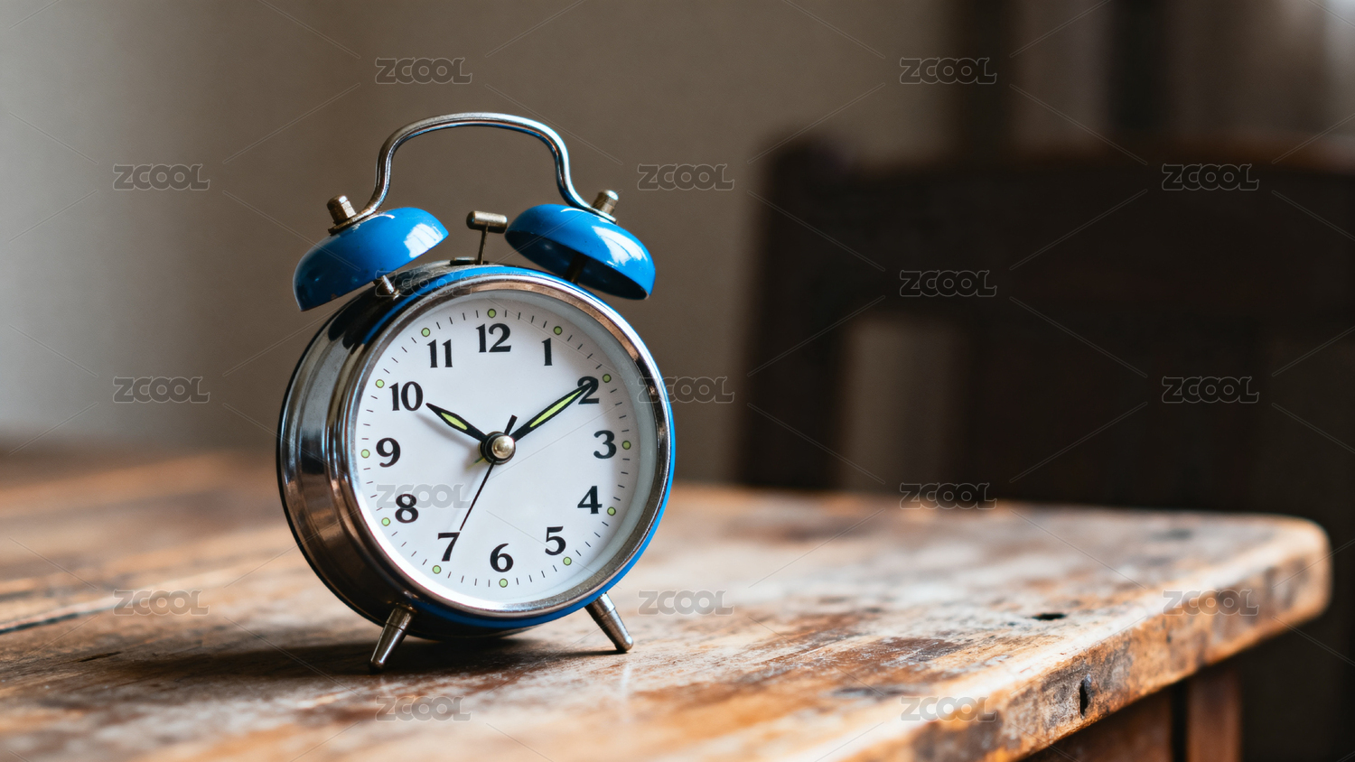 蓝色闹钟显示十点十分