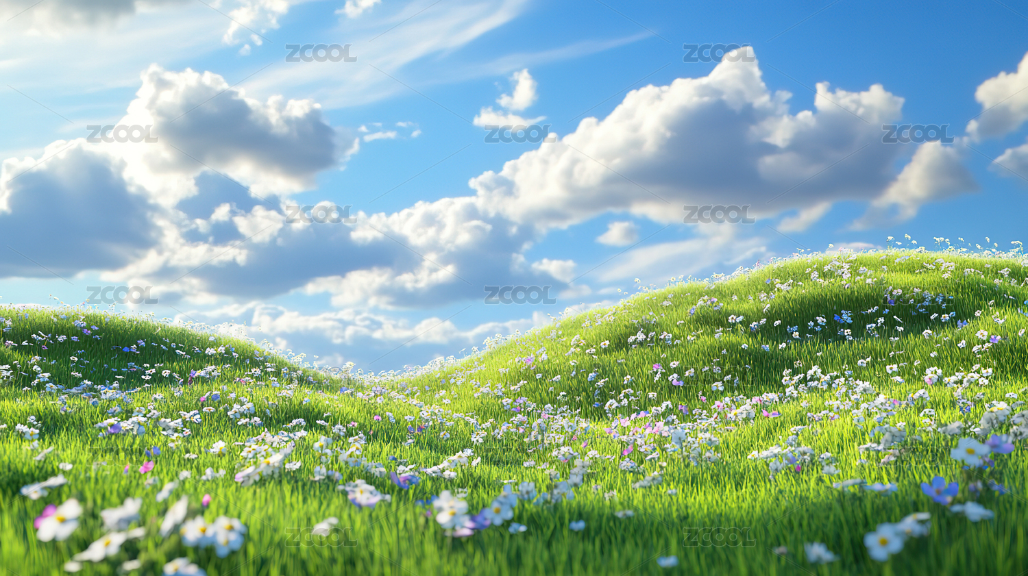 草地,花朵,天空,绿植,自然,风景,清新,宁静,花香,草地景观