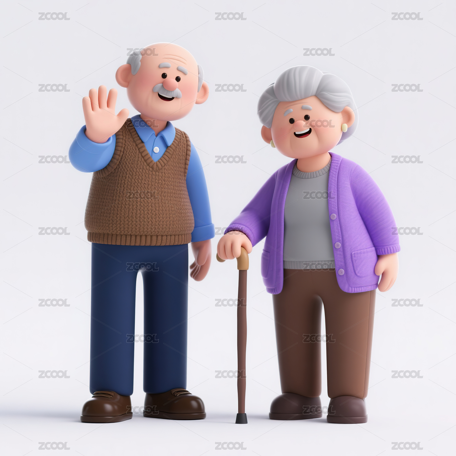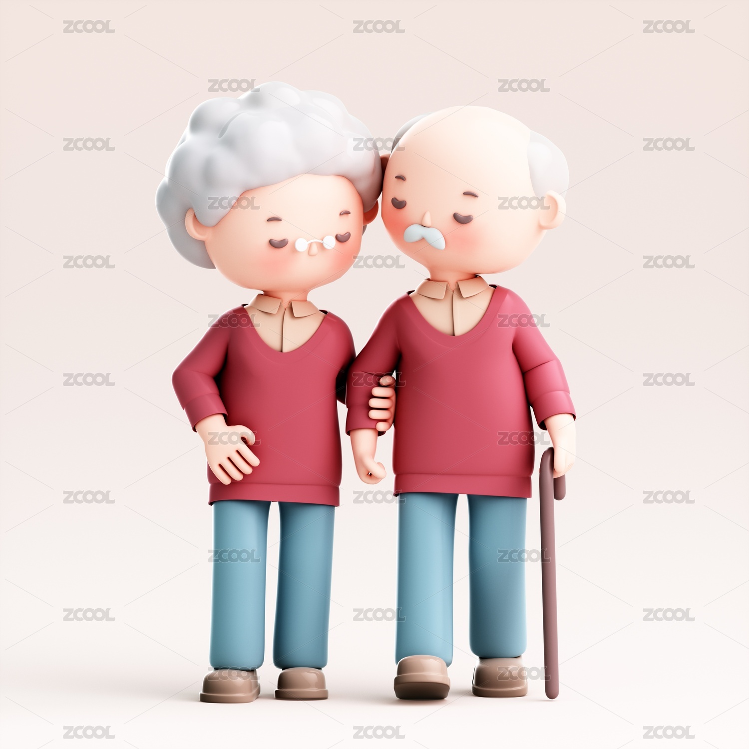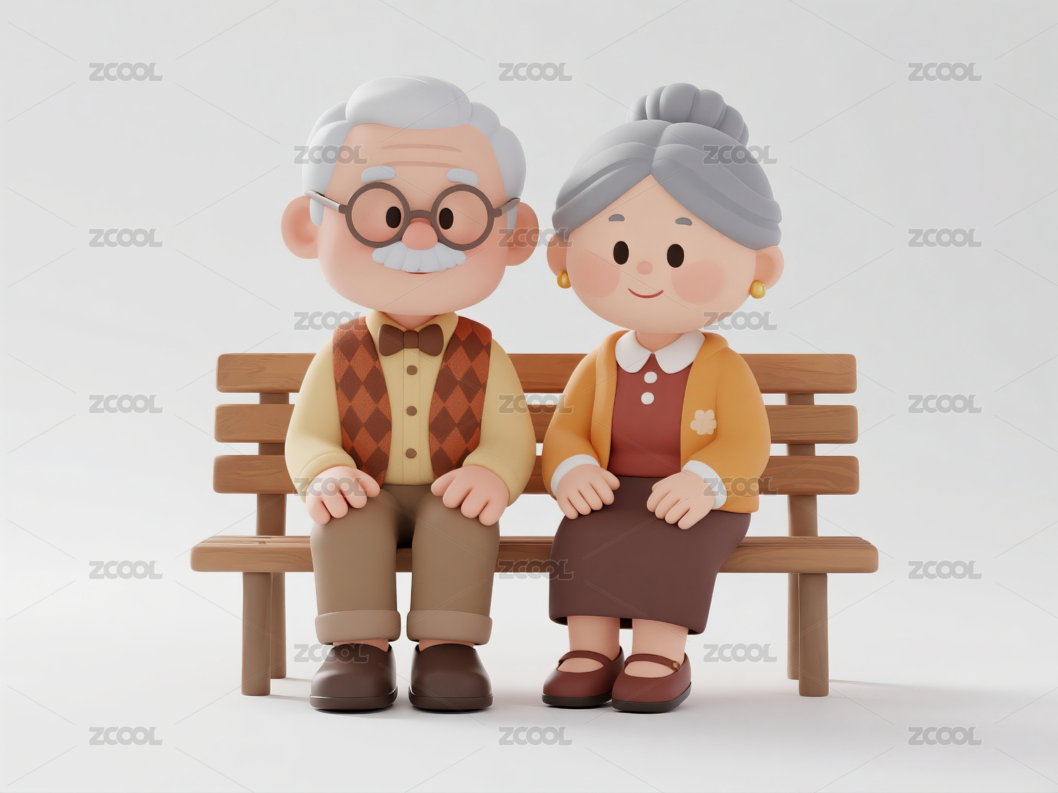 三维,3d,人物,可爱,爷爷,奶奶,长椅,重阳节