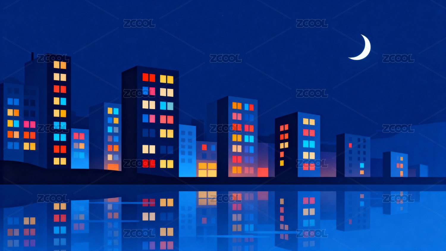 夜幕下的城市剪影与弯月