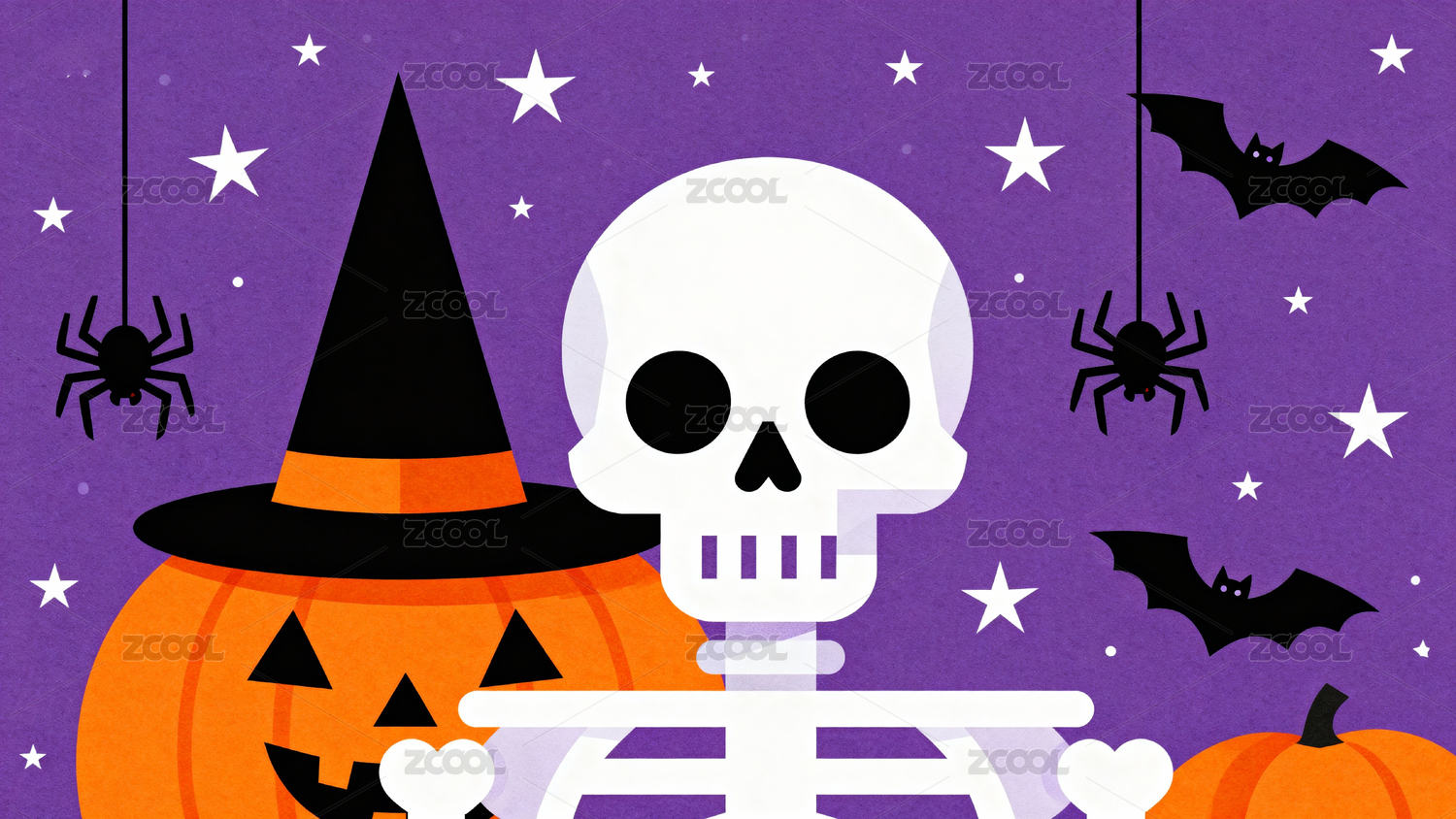 万圣节主题插画骷髅与南瓜