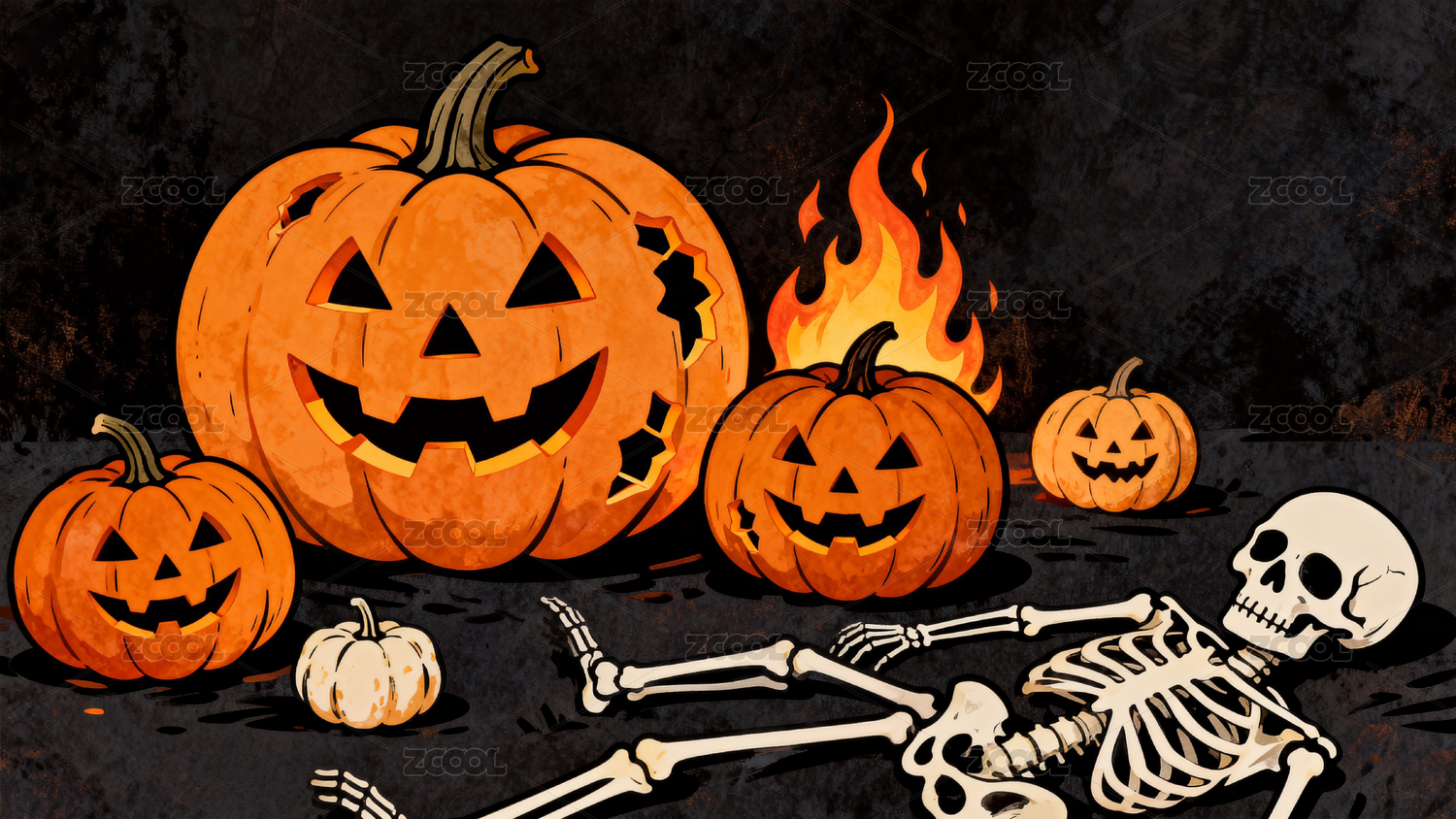 万圣节南瓜骷髅火焰场景