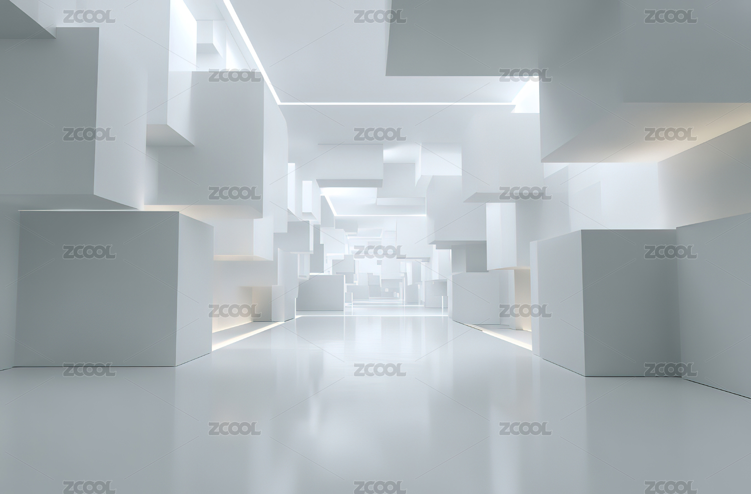 白色几何空间走廊