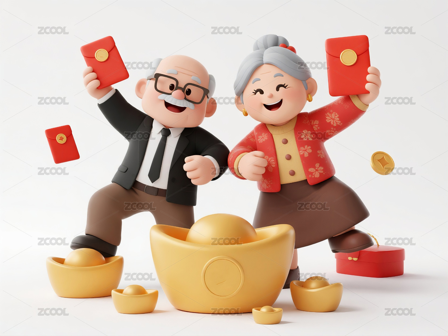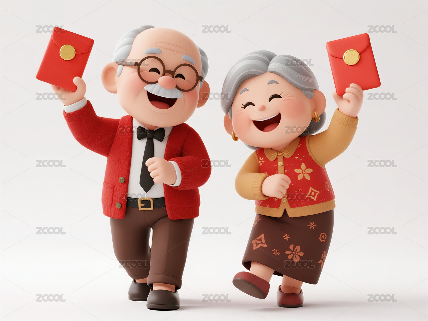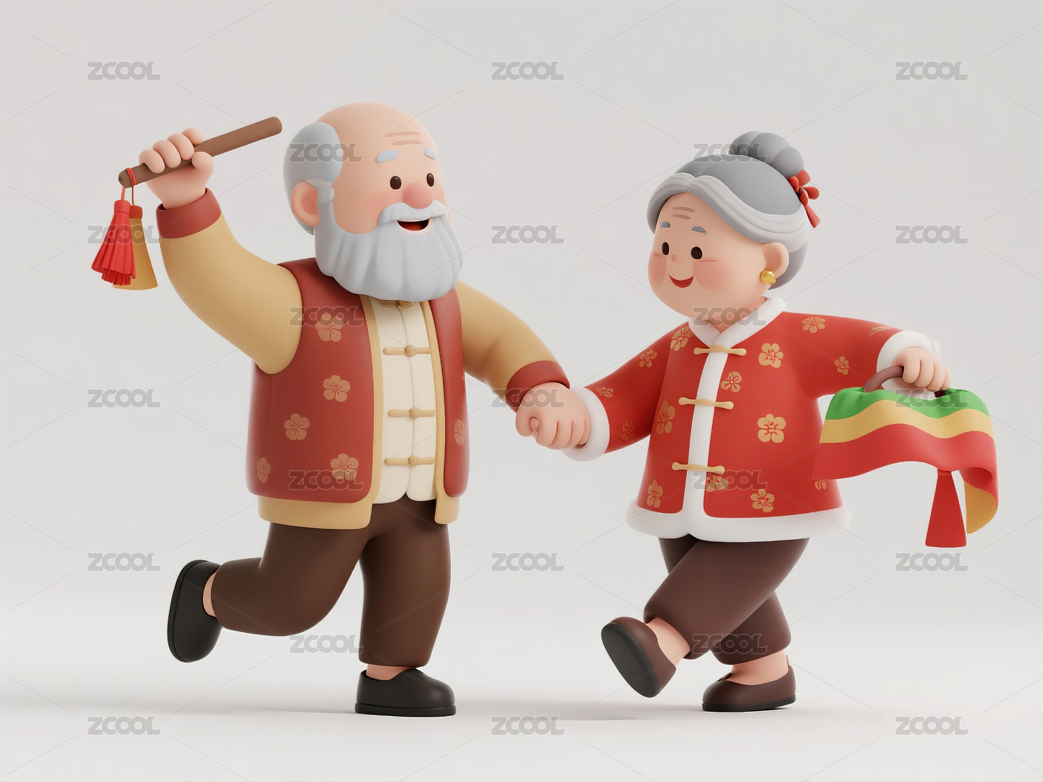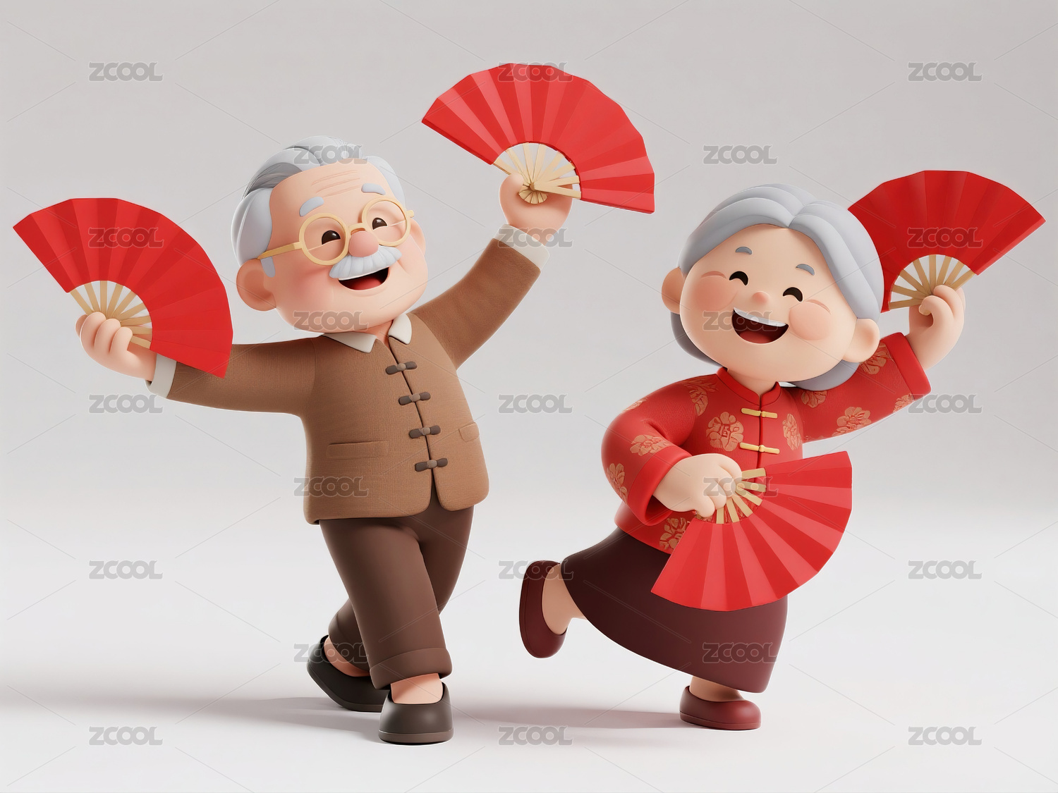 三维,3D,人物,爷爷,奶奶,跳舞,扭秧歌,扇子,扇子舞,养老
