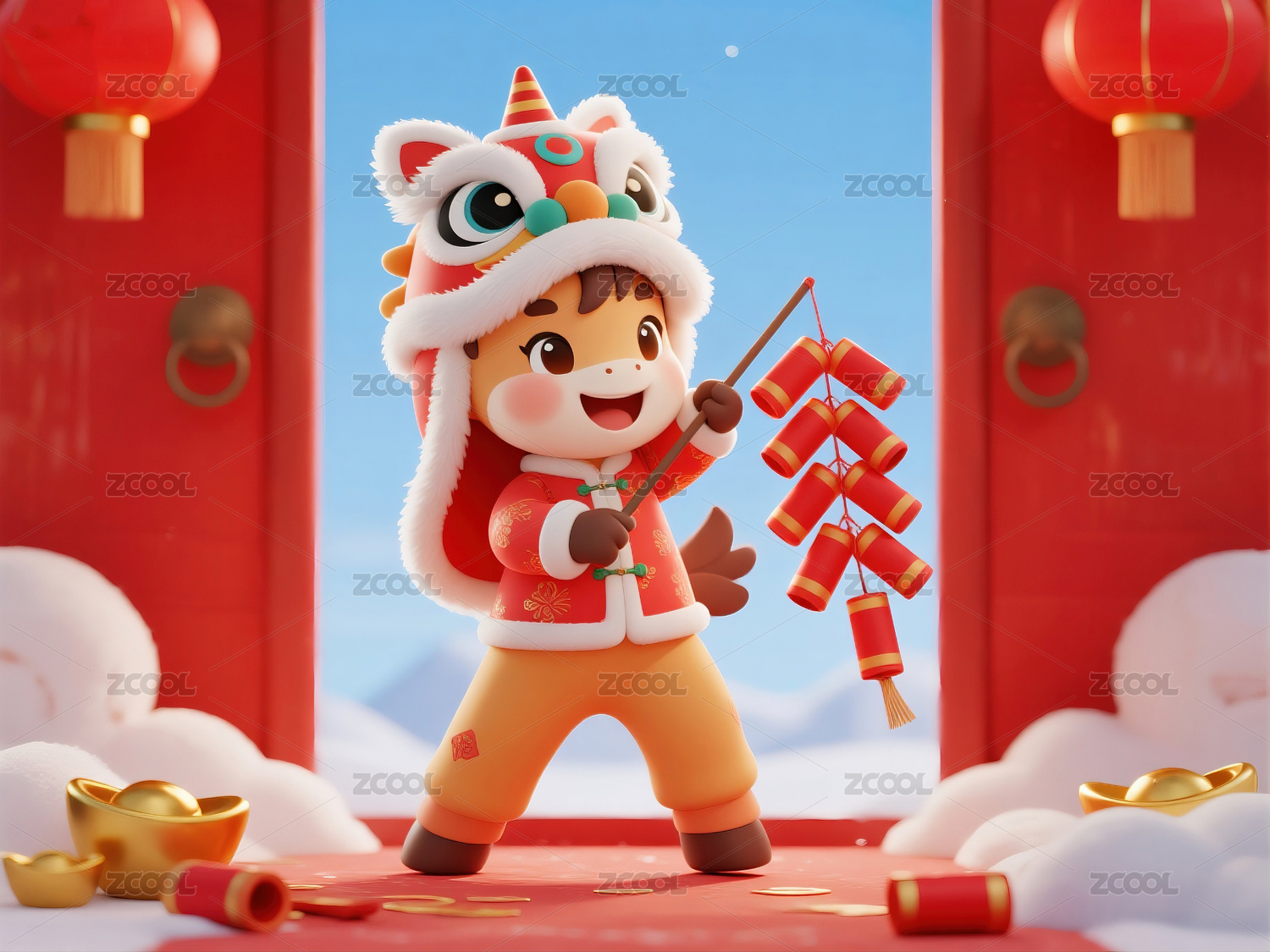 三维,3d,人物,春节,灯笼,马年,小马,马,生肖,背景