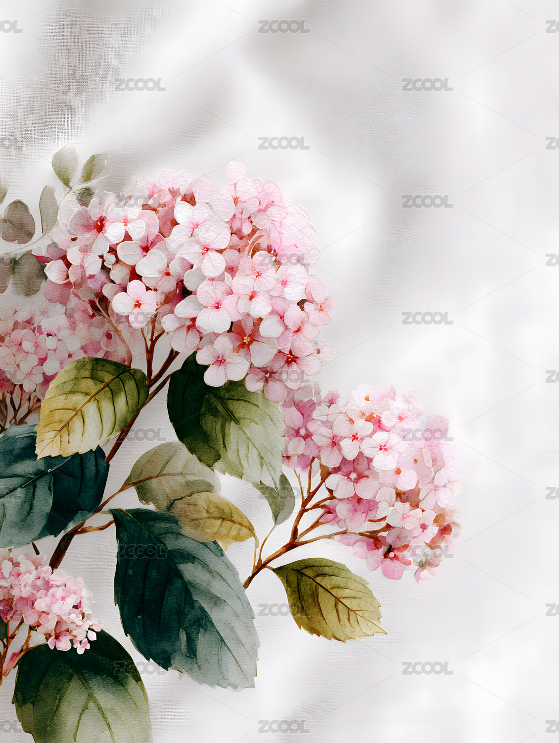 数码复古水彩绣球花束装饰抽象海报背景