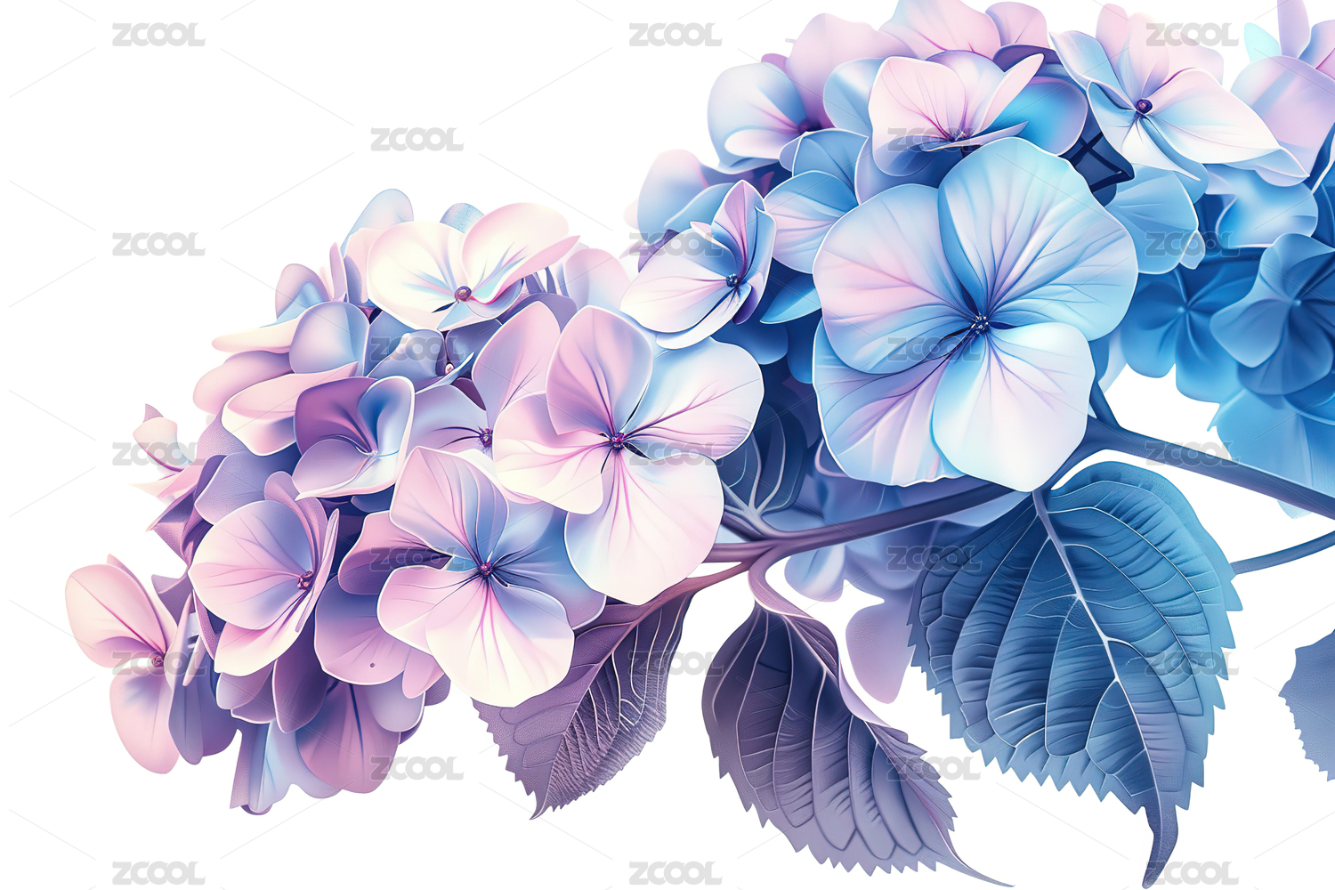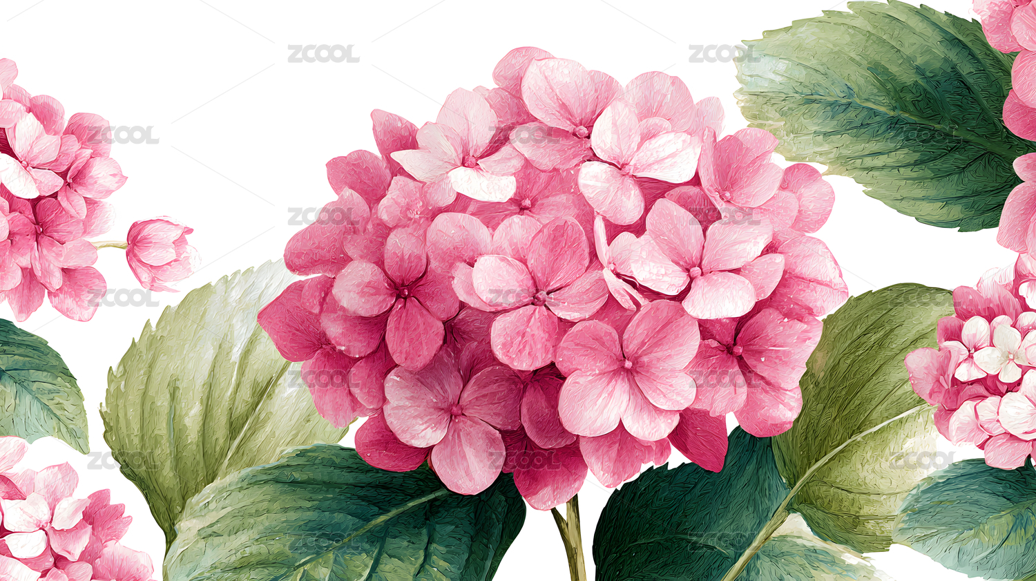 粉色,花朵,鲜花,绣球花,盛开,叶子,笔触,插画,植物,绿叶