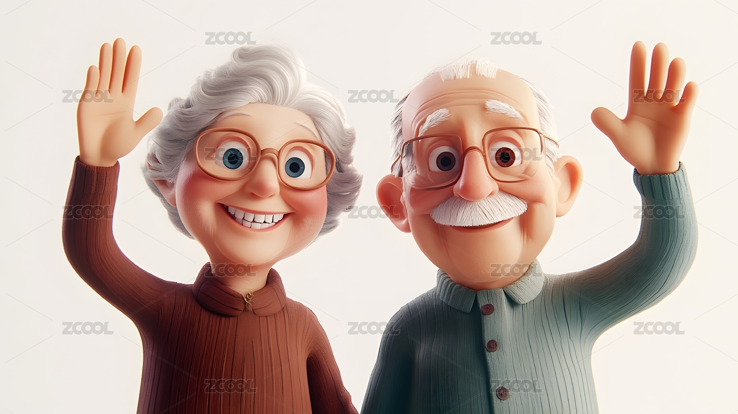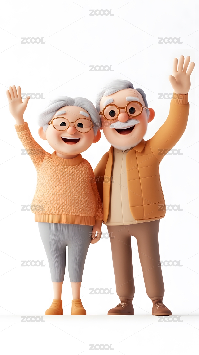 卡通老夫妇挥手问好