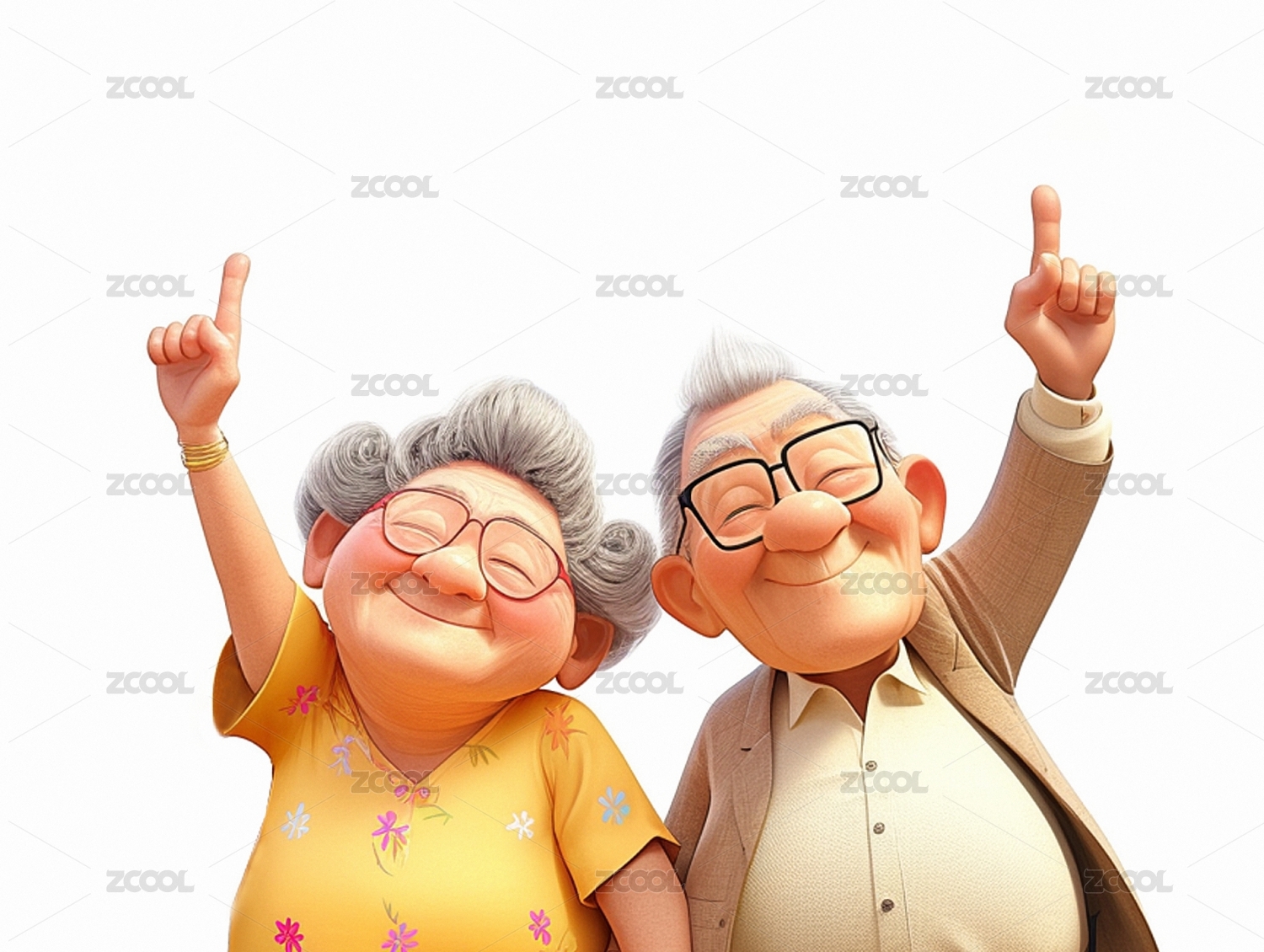 3D卡通载歌载舞的老年人