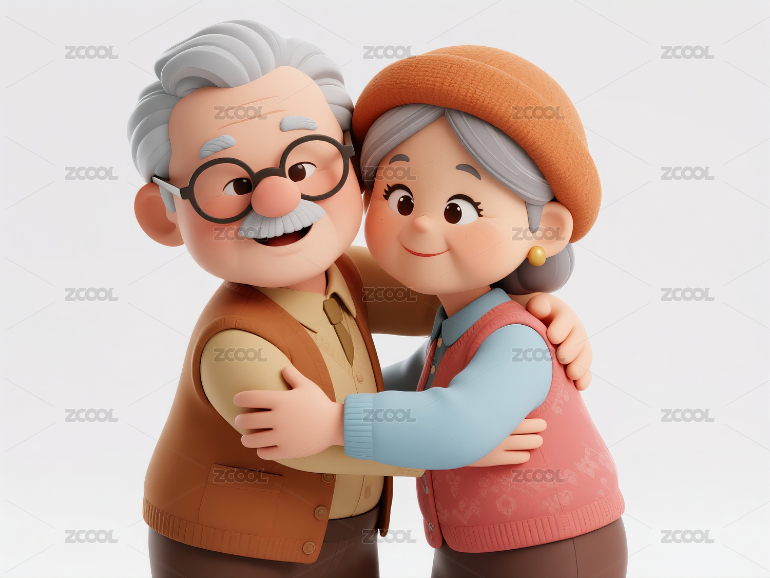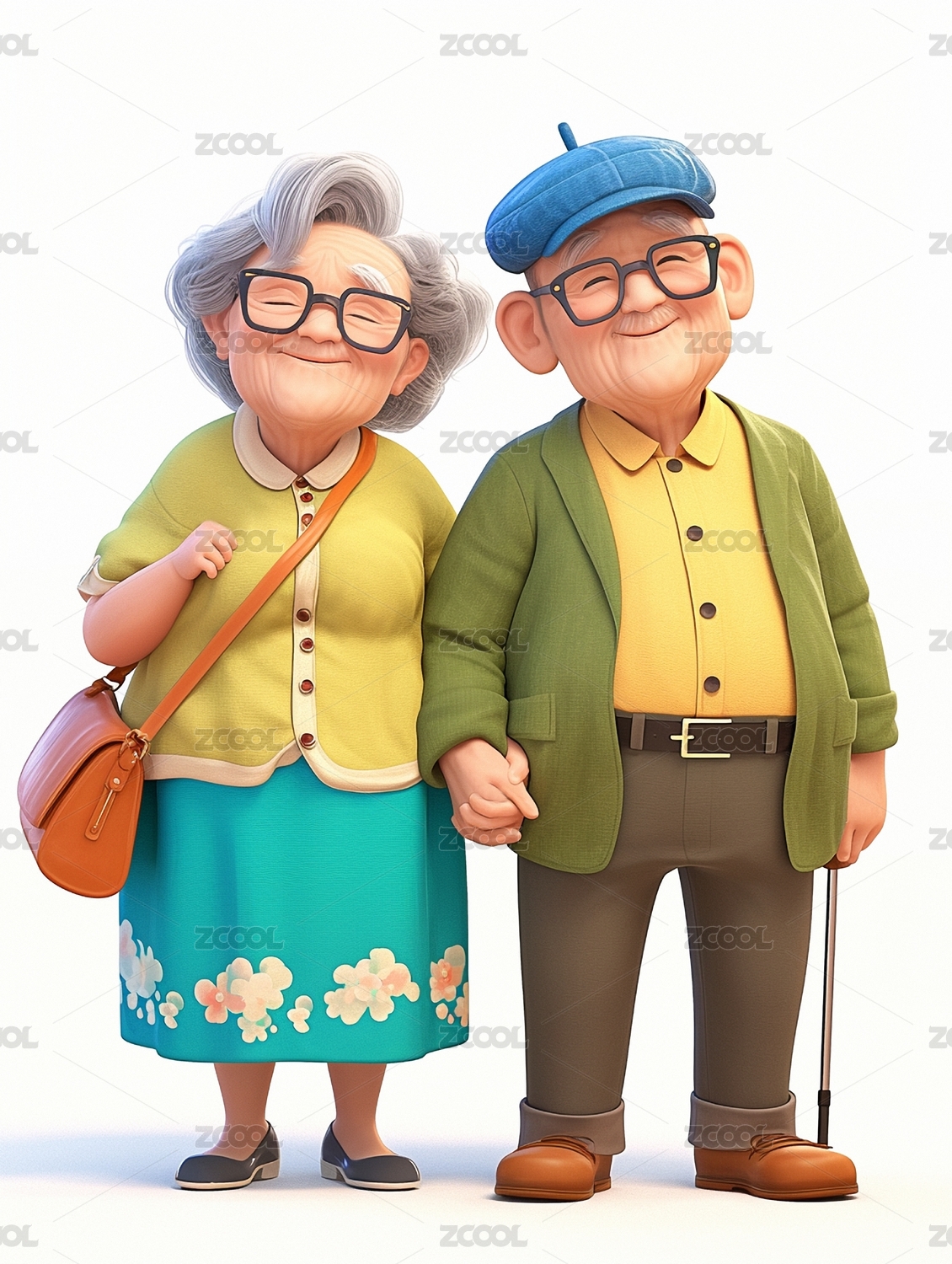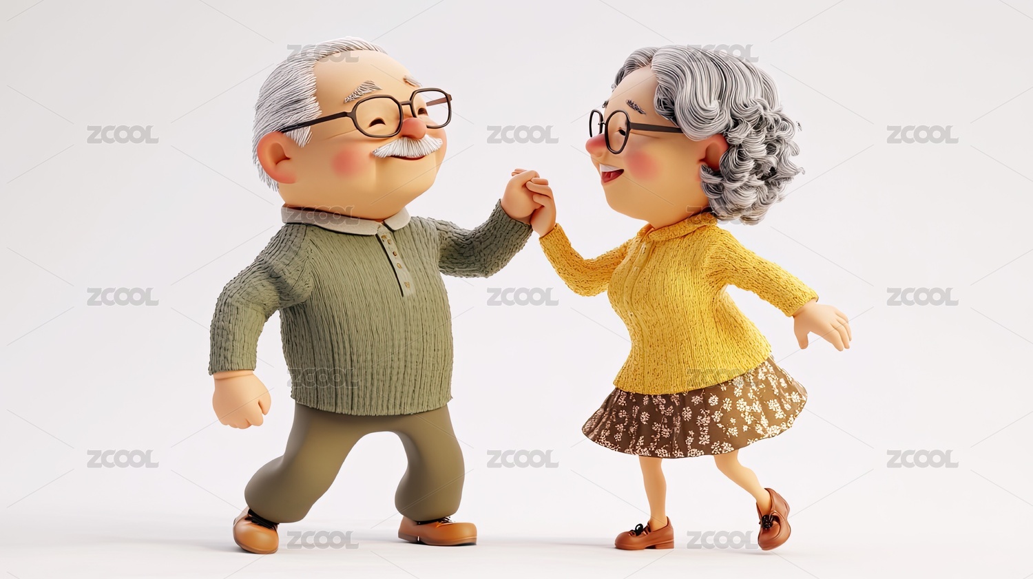 老年夫妇手牵着手3D卡通风格