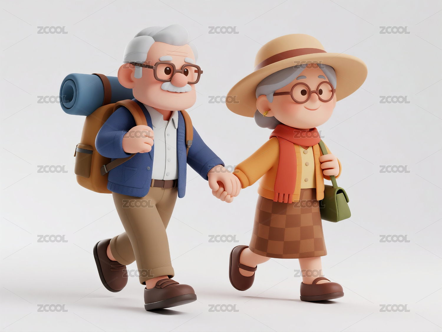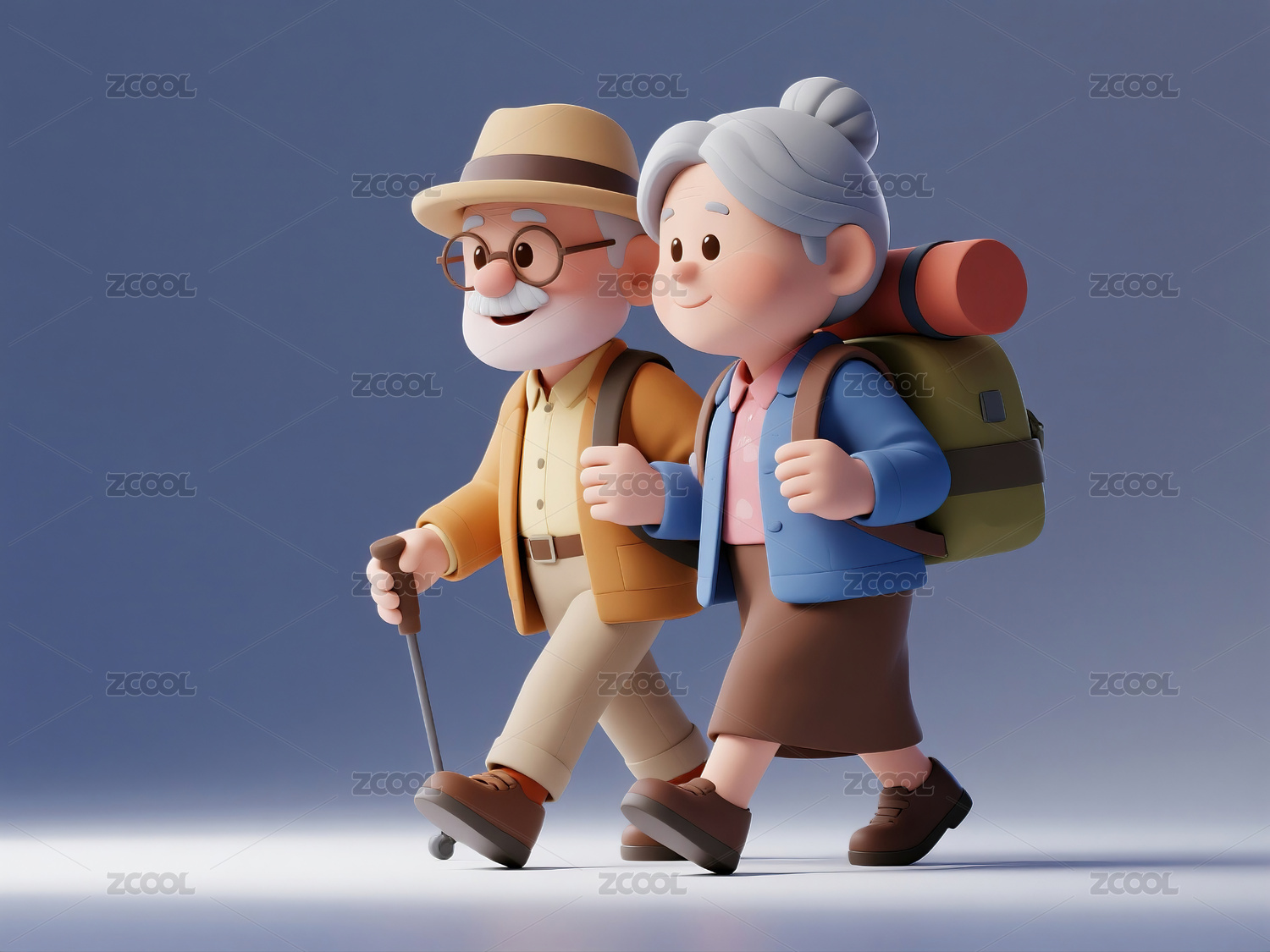 三维,3d,人物,可爱,爷爷,奶奶,旅行,书包,背包