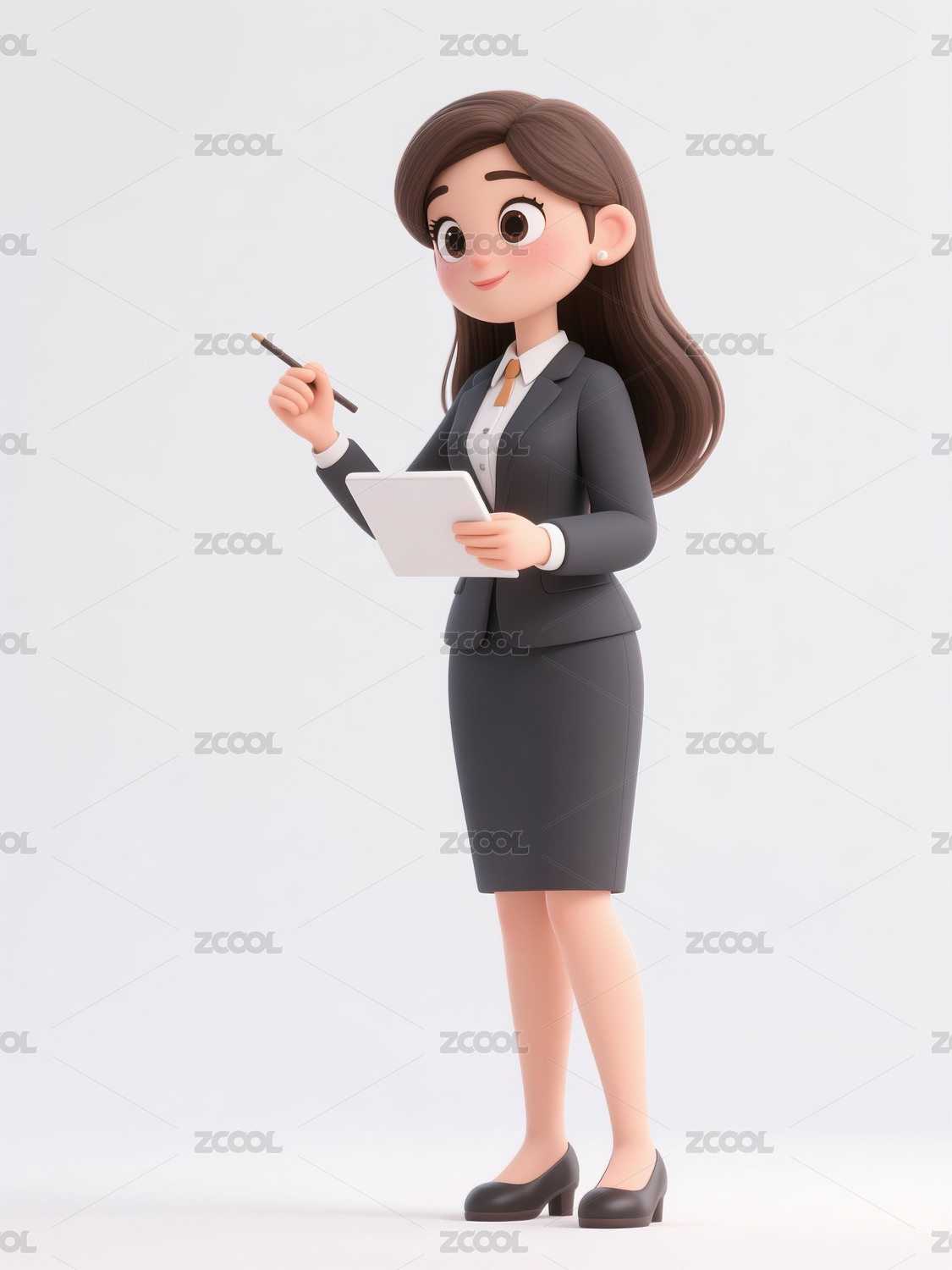 三维,3D,可爱,卡通,人物,西服,西装,女士,商务,女人