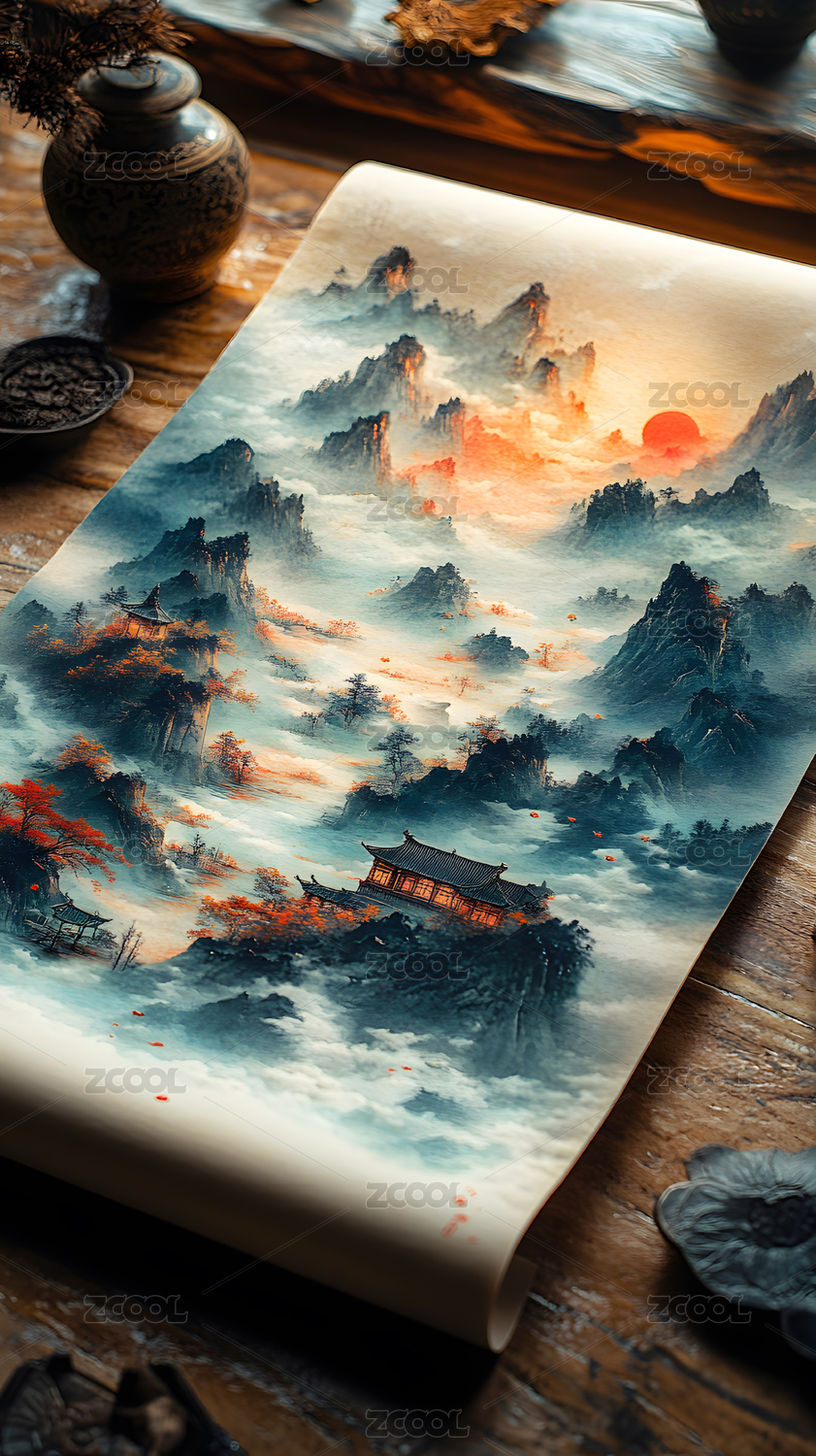 自然,绘画,水墨,传统,艺术,花枝,纹理,意境,东方,山水