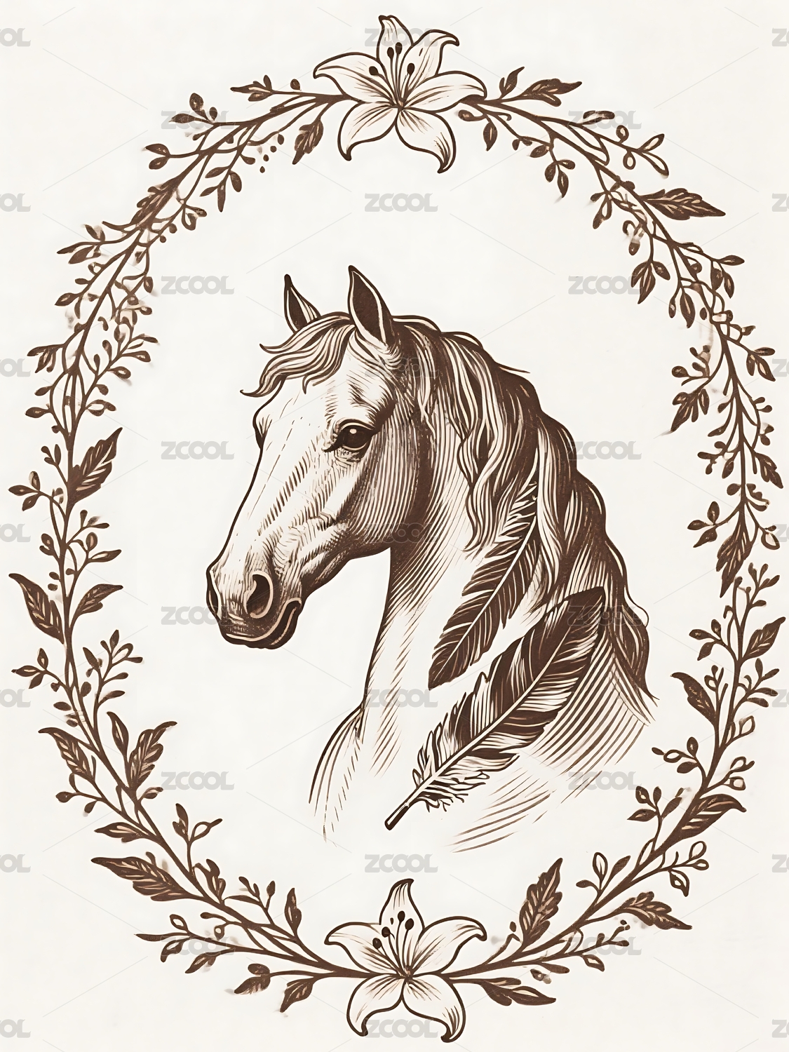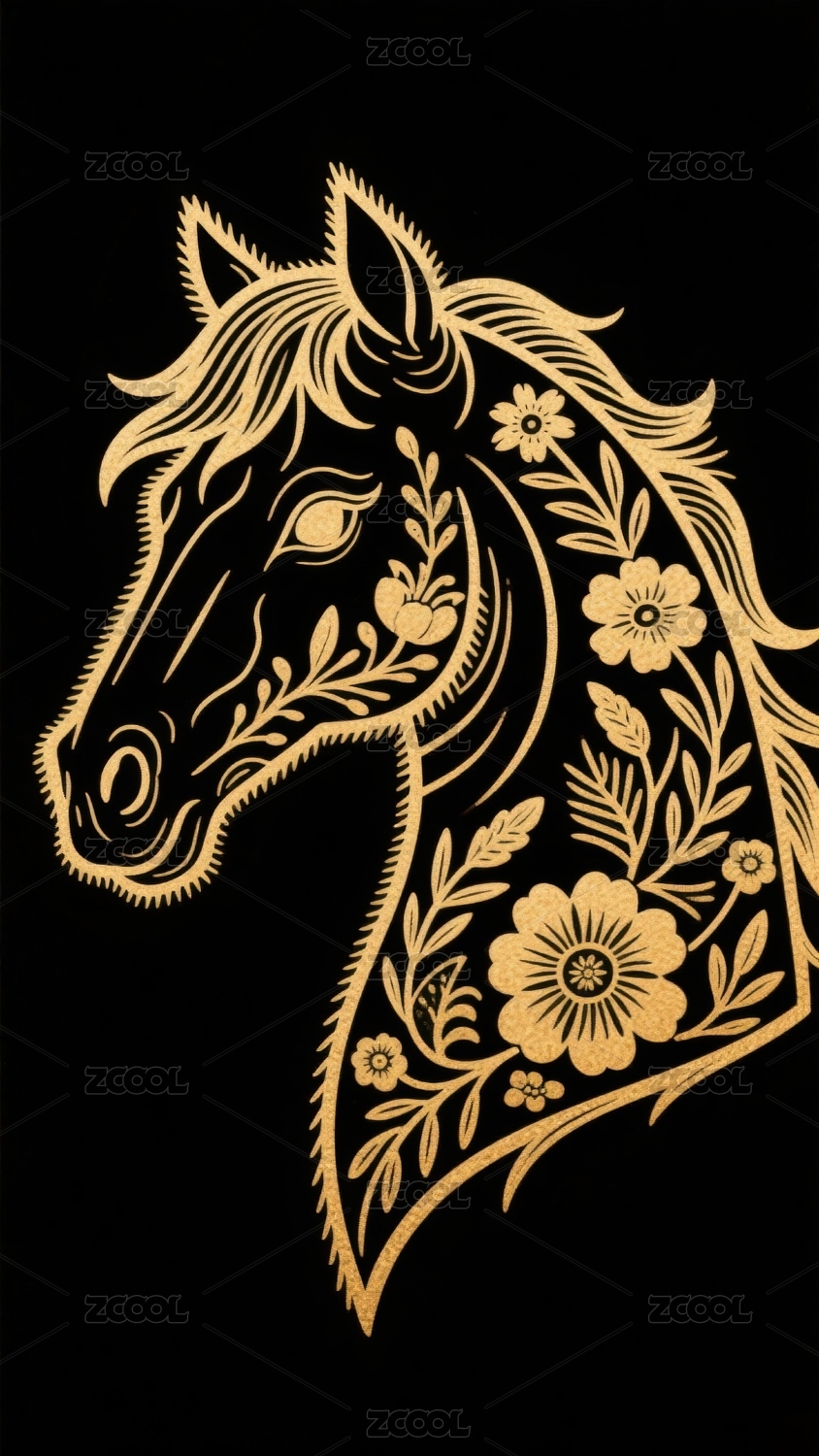 金色马头花卉图案