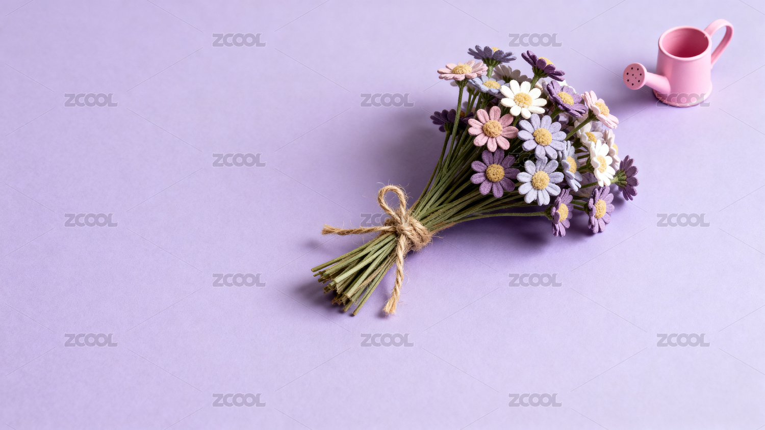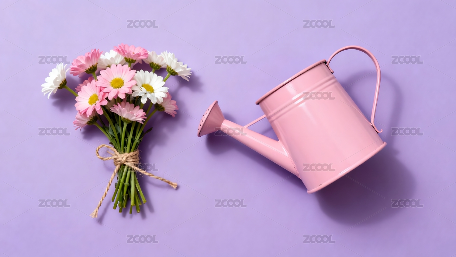 紫色,粉色,洒水壶,花朵,花茎,花瓣,花束,背景,桌面,花蕊
