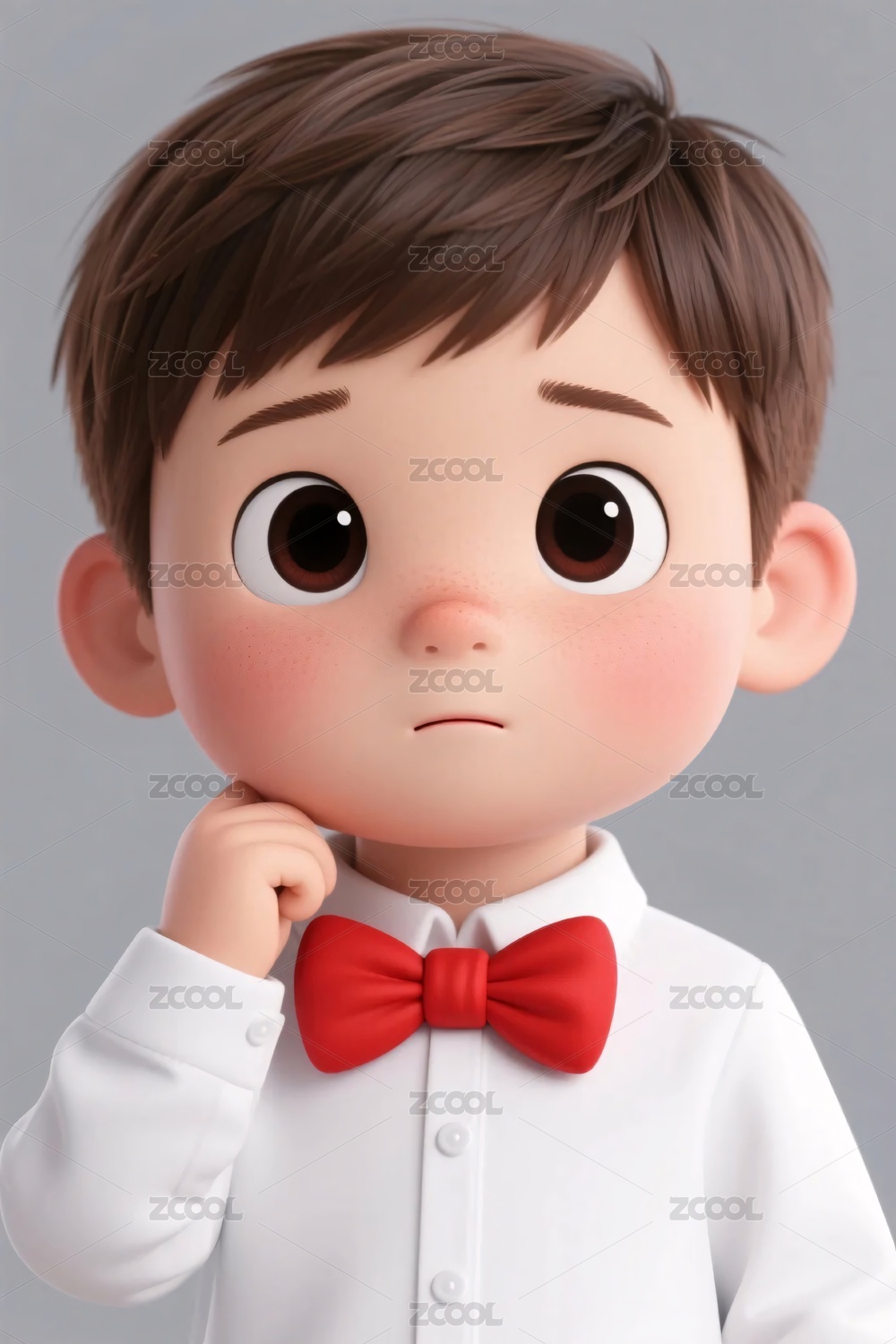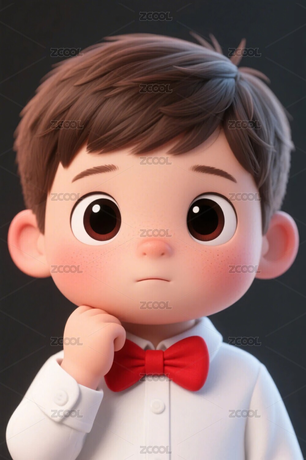 戴近视眼镜的小男孩儿童纯色背景3D卡通头