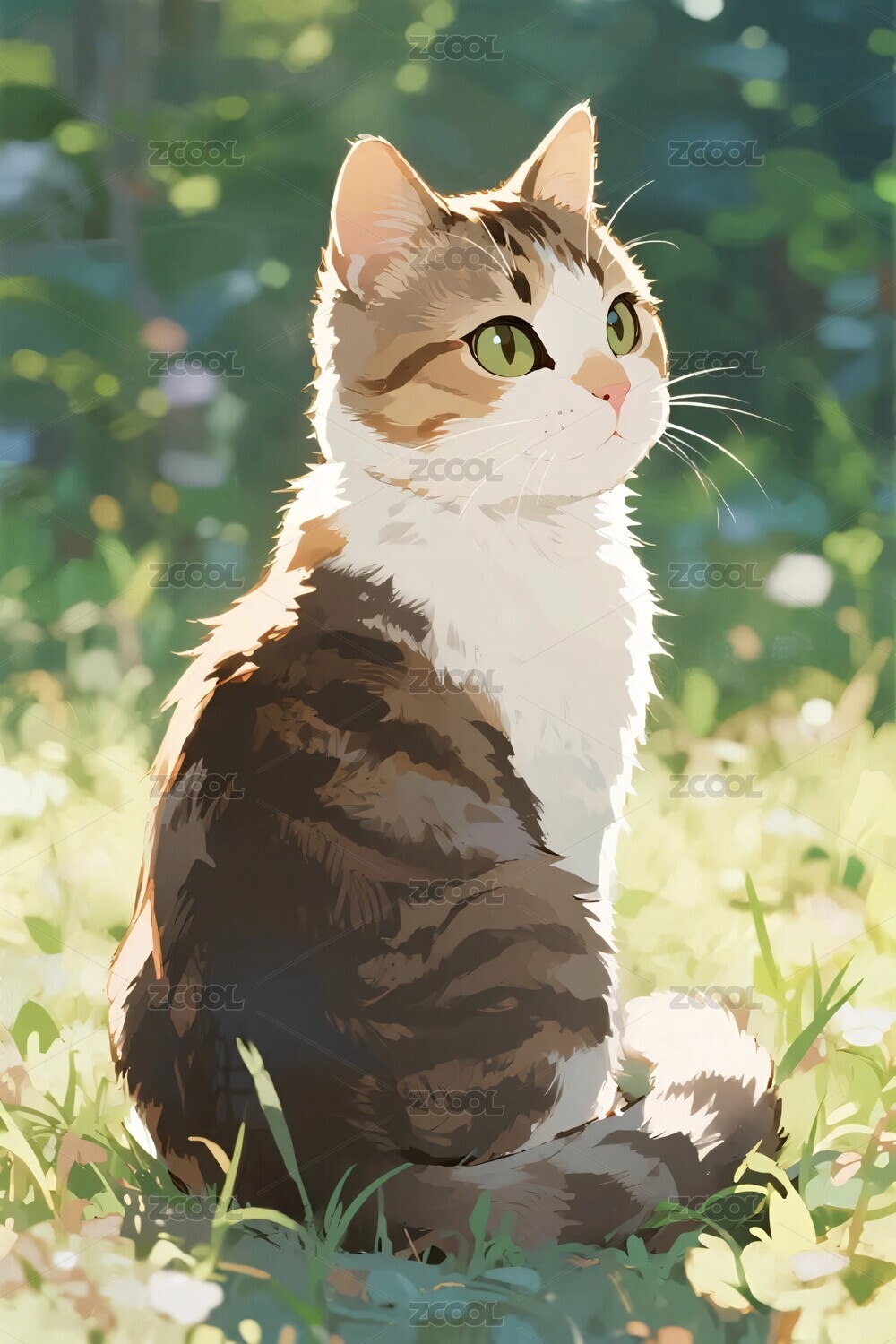 草地上的猫咪插画