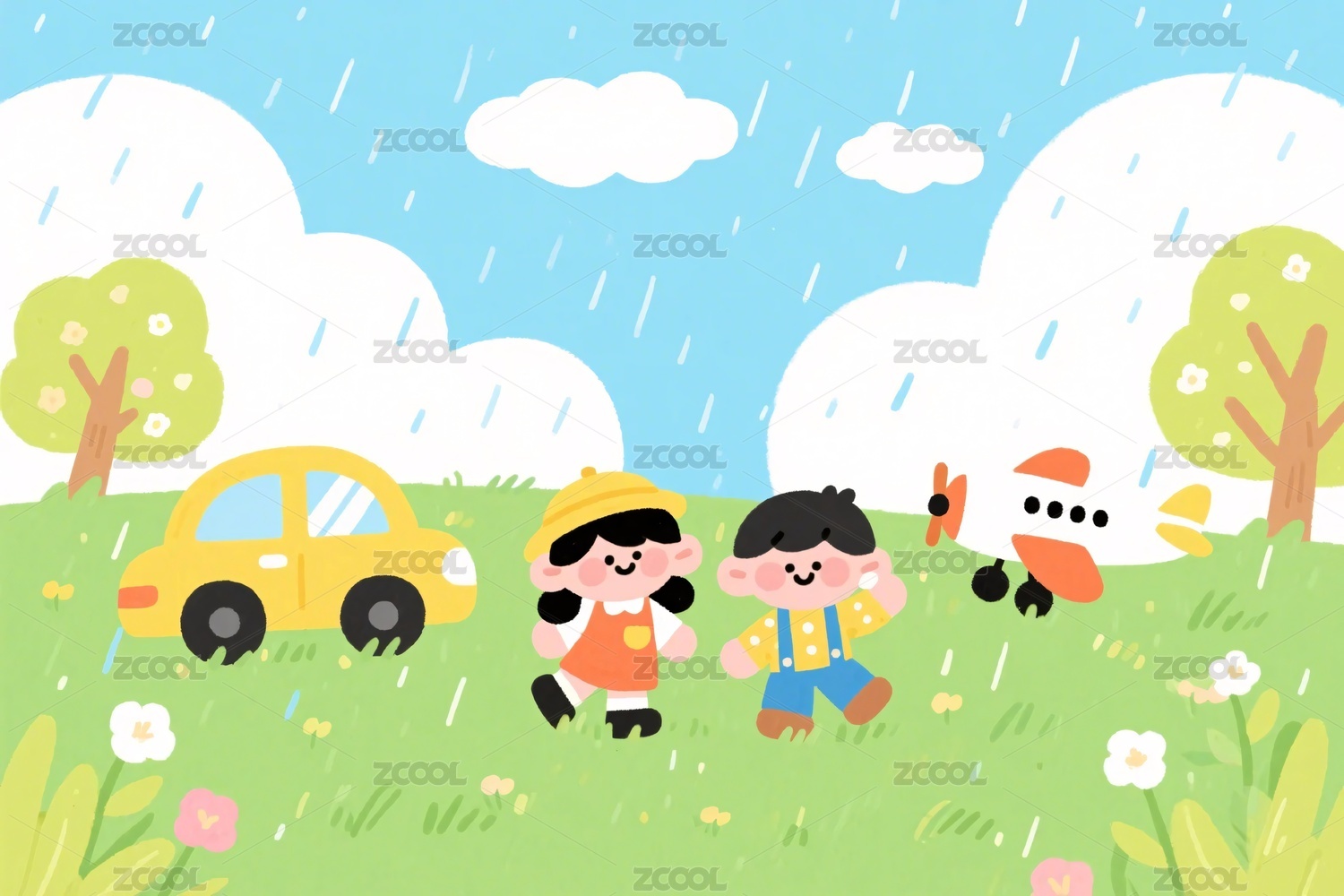 卡通,雨伞,小女孩,雨滴,插画,矢量,儿童,图案,背景,可爱