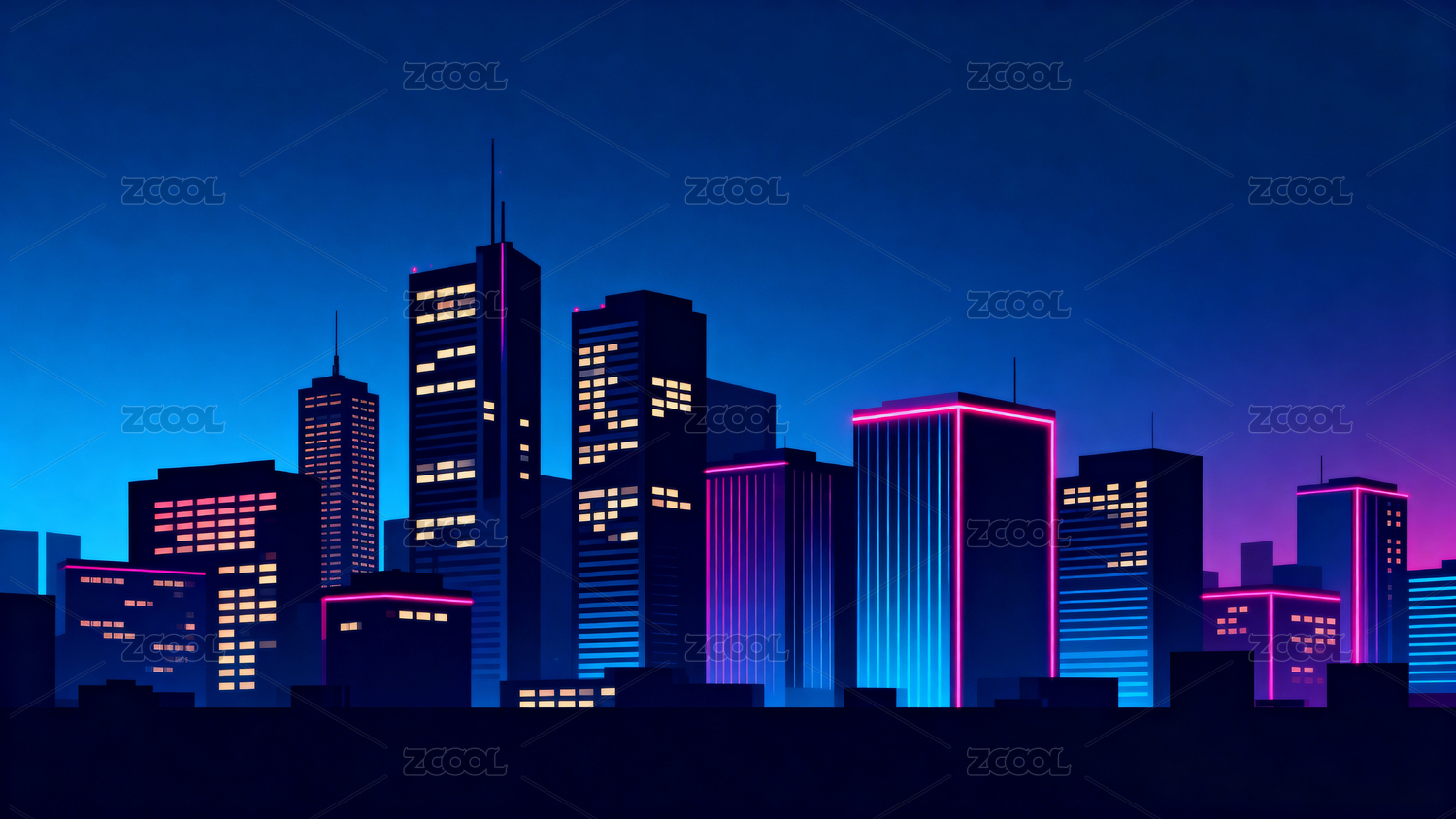 科技感夜晚繁荣的都市灯火通明的建筑群办公楼