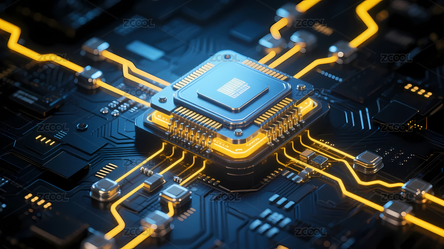 中央处理器黄色蓝色电路