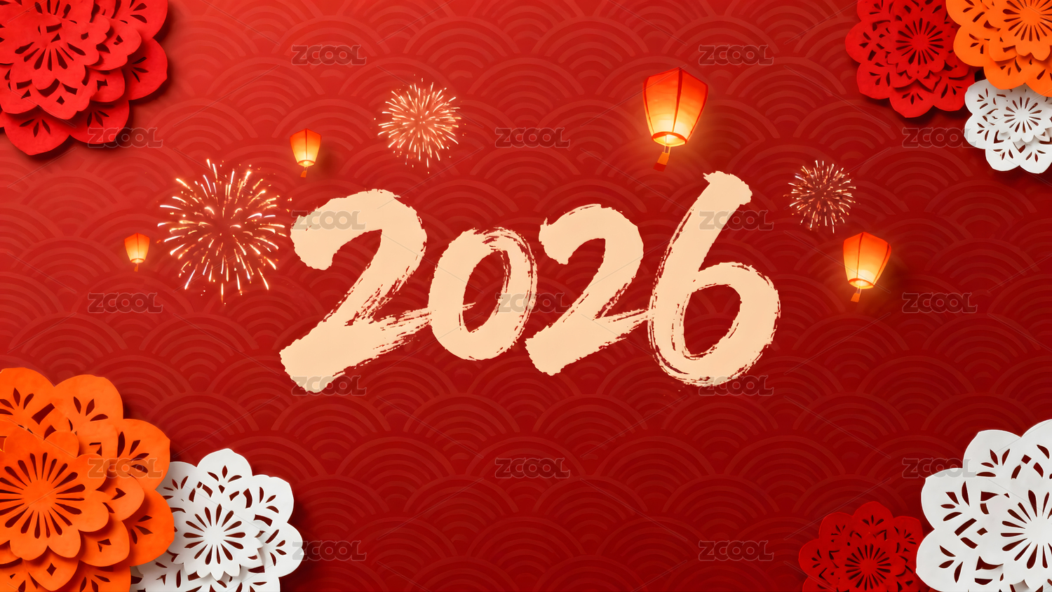 2026,新年,烟花,骏马,红色,背景,灯笼,中国结,花朵,喜庆