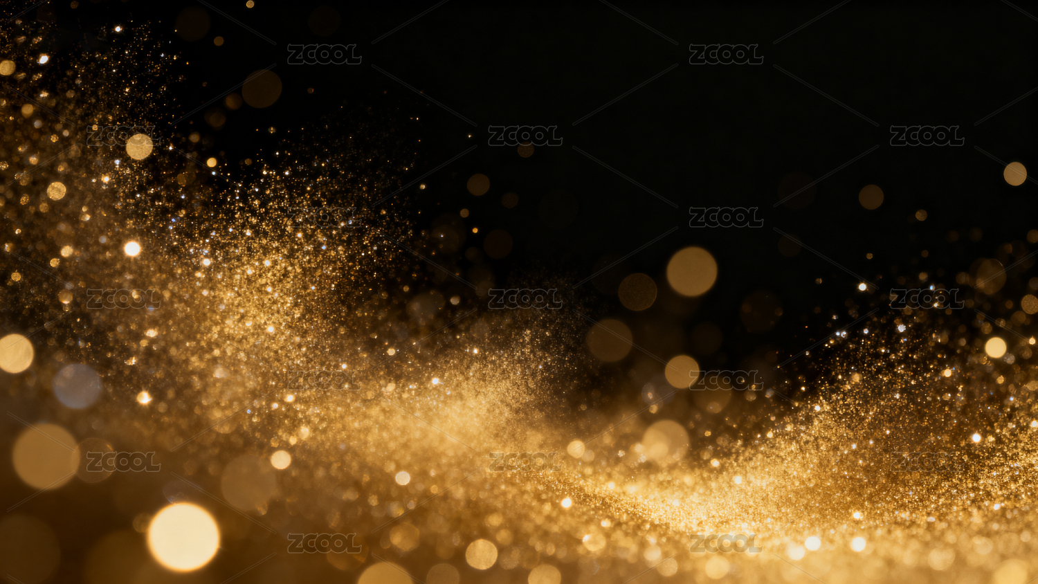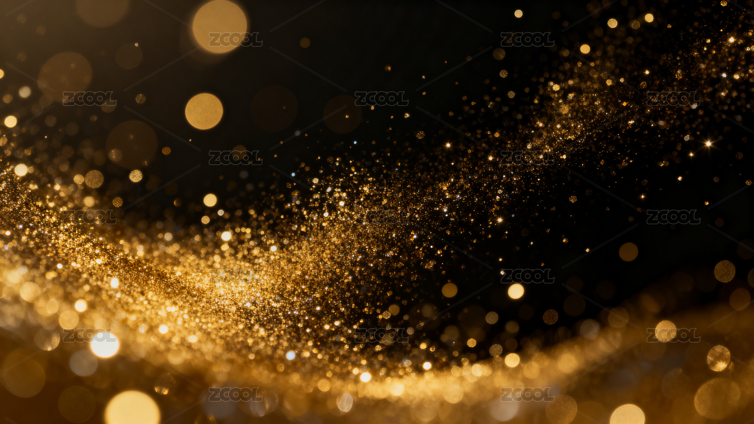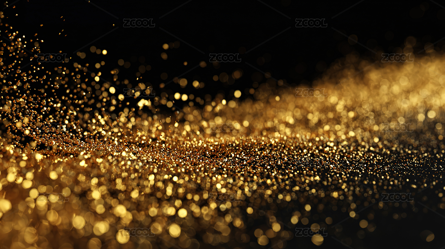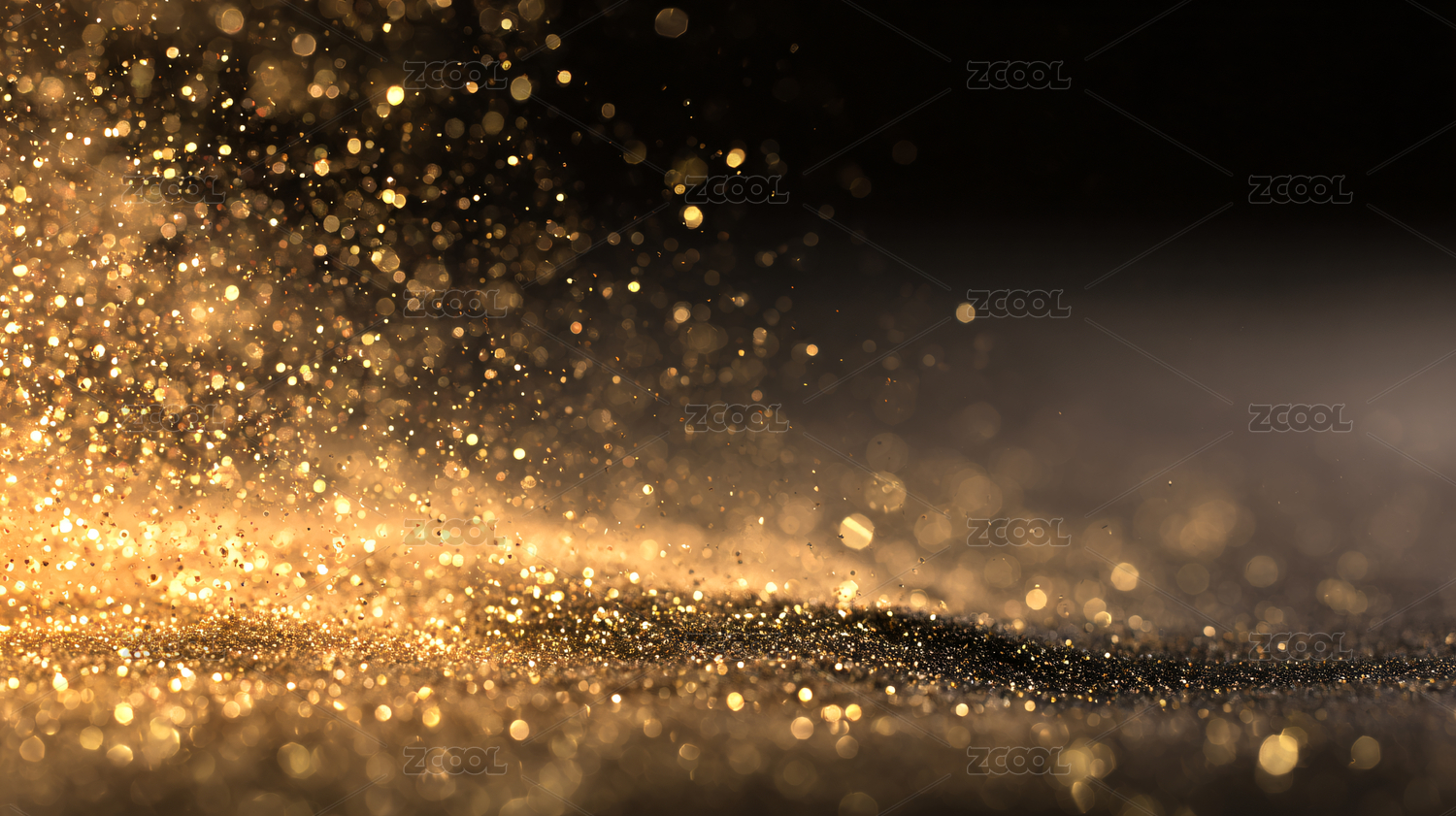 金色光点洒落黑色背景营造梦幻氛围