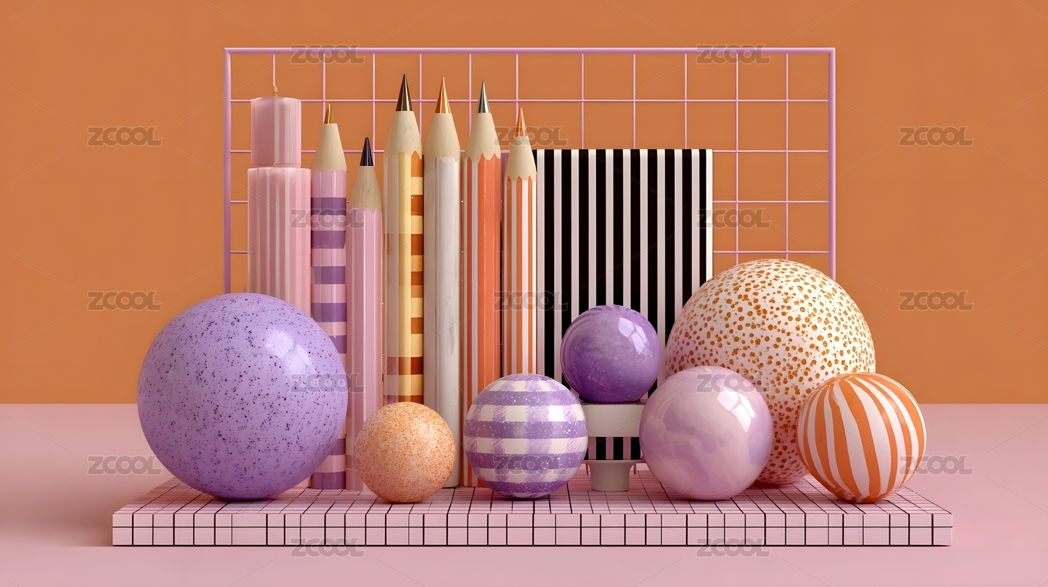 橙色,蓝色,条纹,背景,白色,粉色,网格,桌面,格子,铅笔