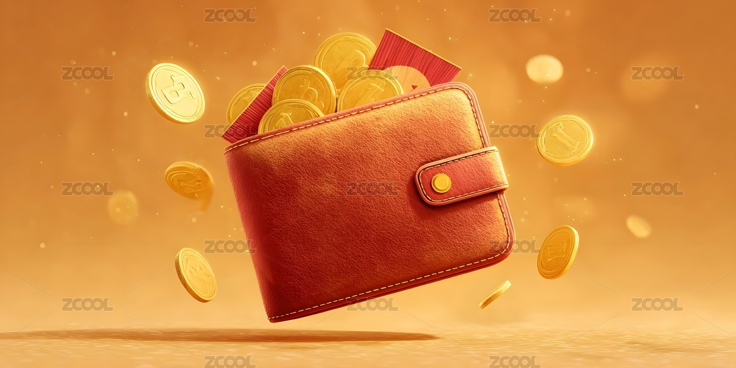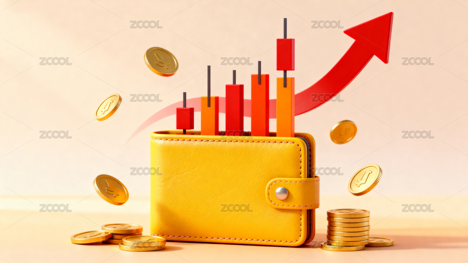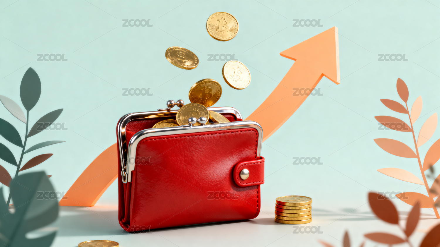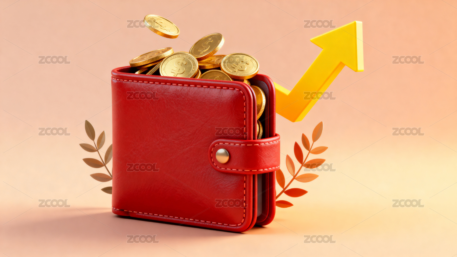 红色钱包金币飞出搭配上升箭头象征财富增长