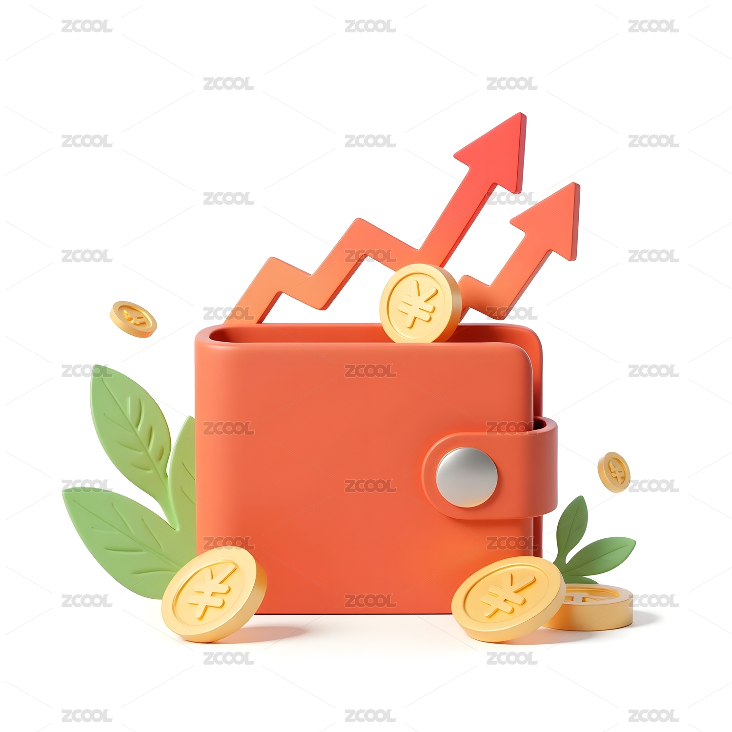 钱包金币与上升箭头象征财富增长