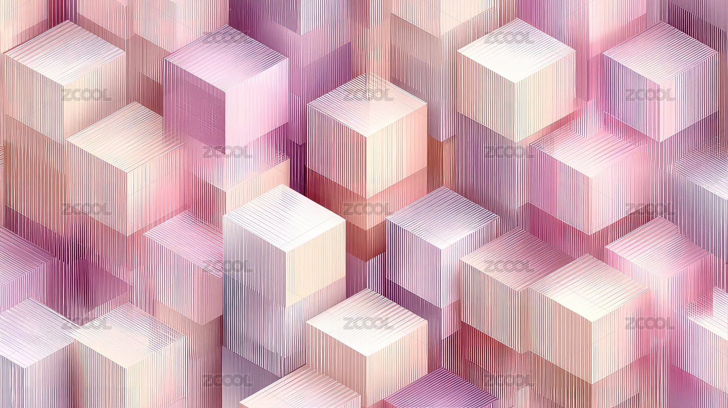 粉色几何图形构成立体方块组成的抽象背景