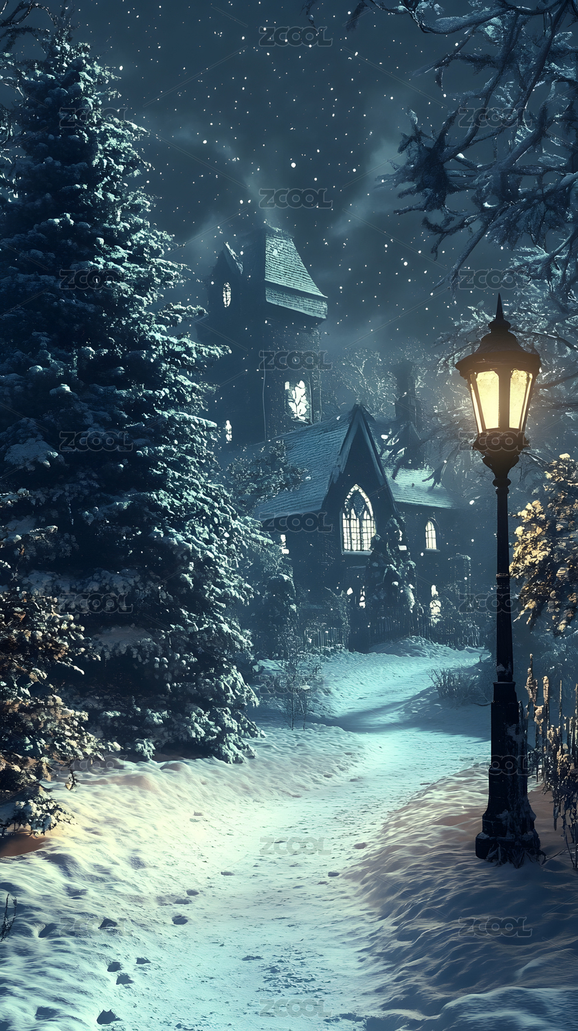 冬天的雪夜童话小屋