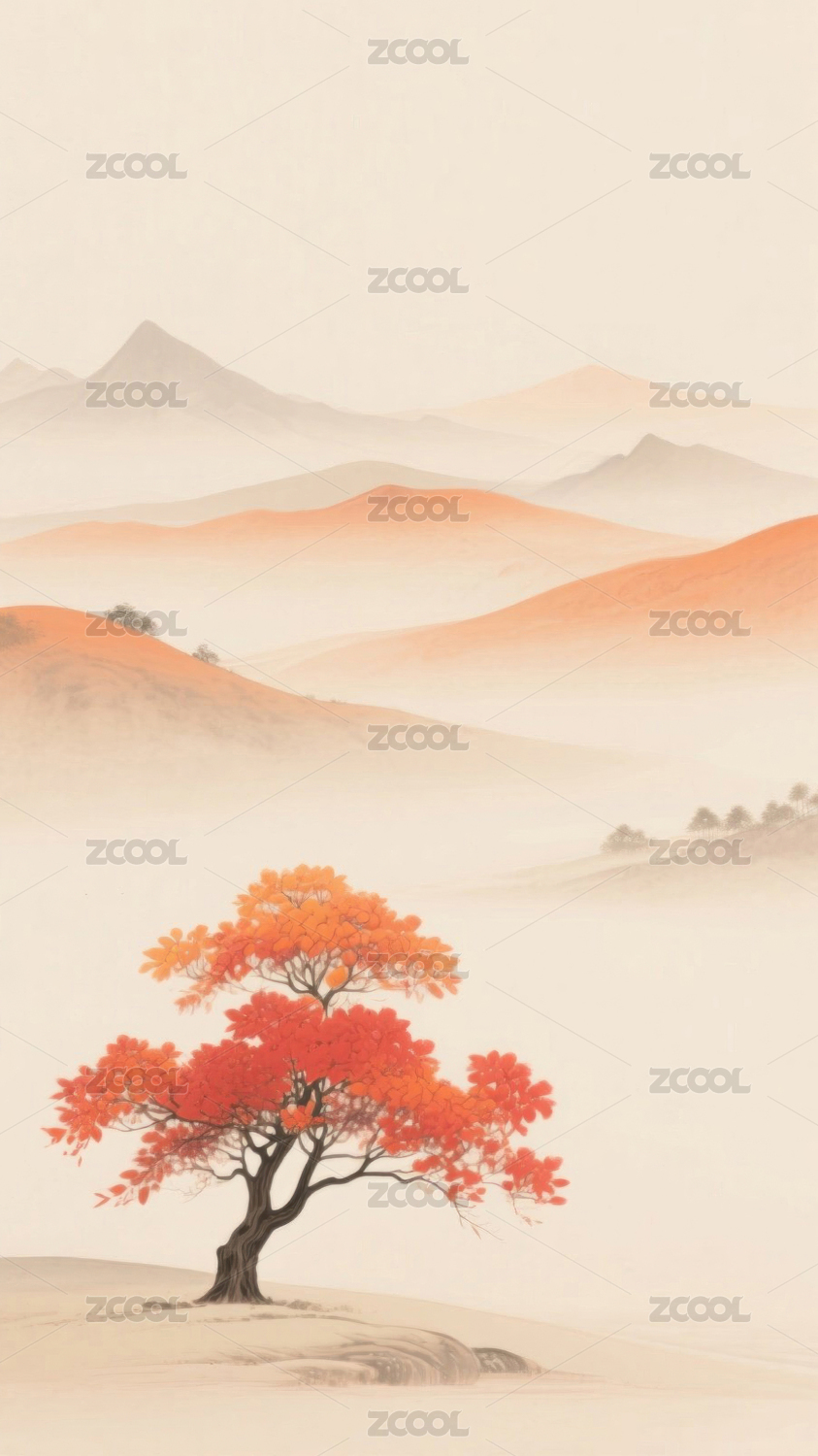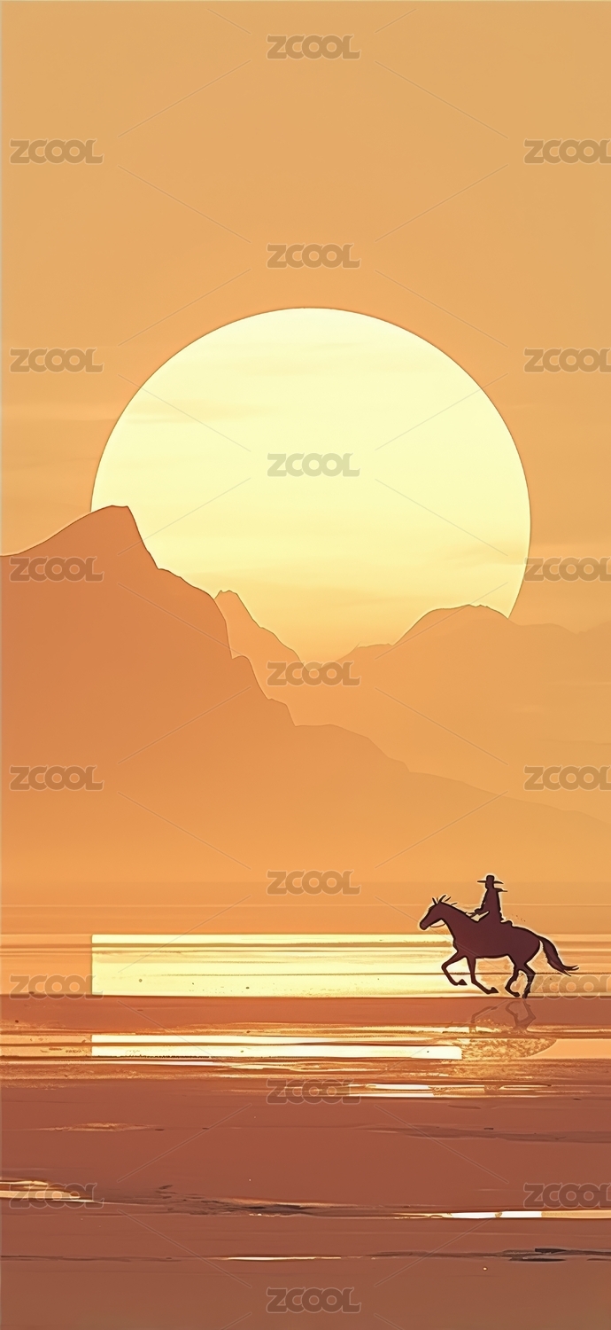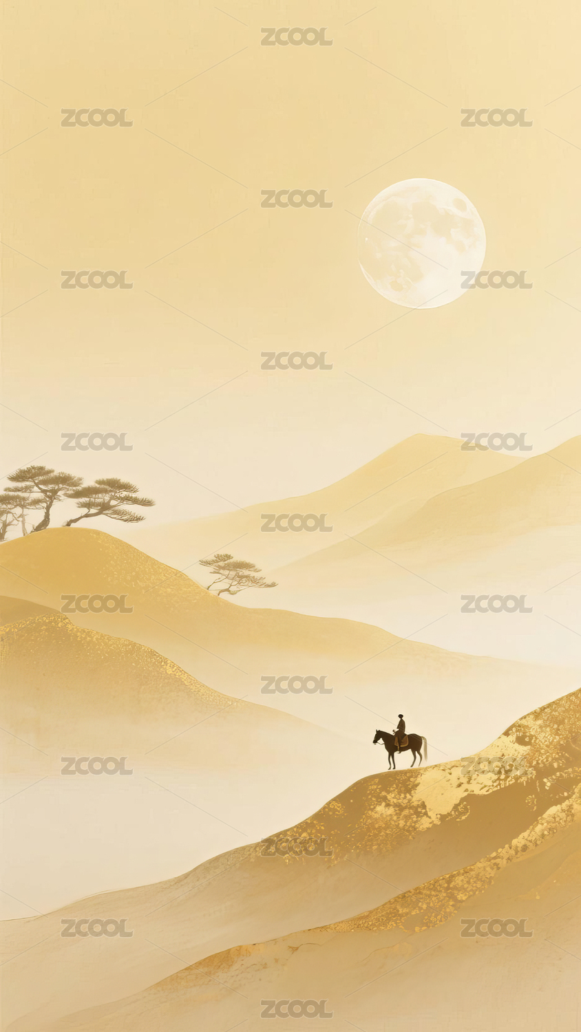 国风,国画,阳光,金色,行人,骑马,山脉,暖色,树木,极简
