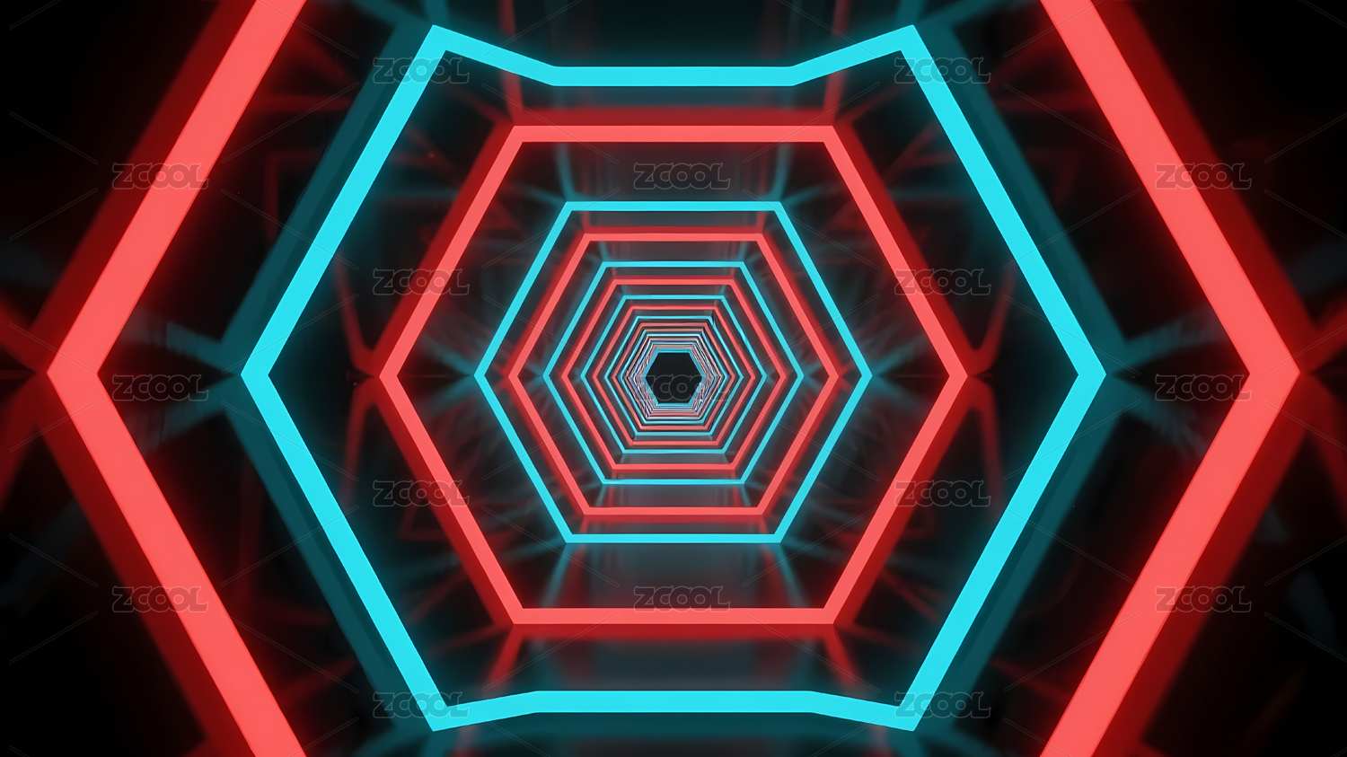 红蓝六边形霓虹隧道