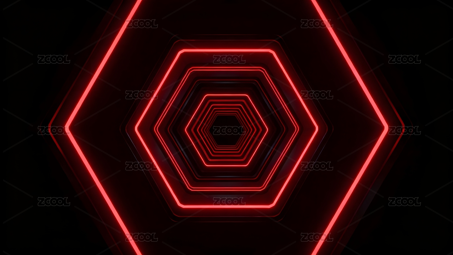 红色霓虹六边形隧道视觉效果