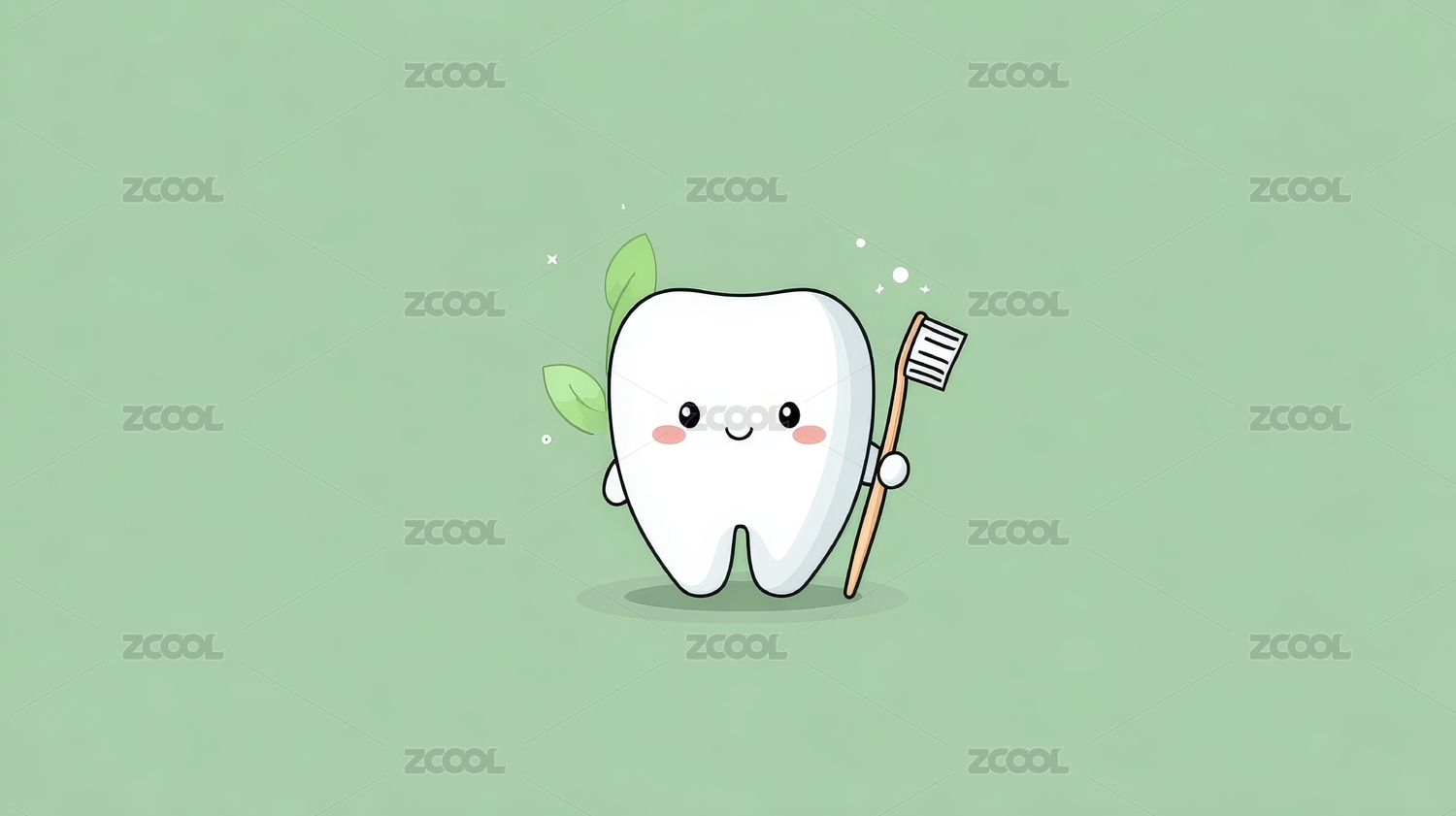 卡通牙齿手持牙刷的画面