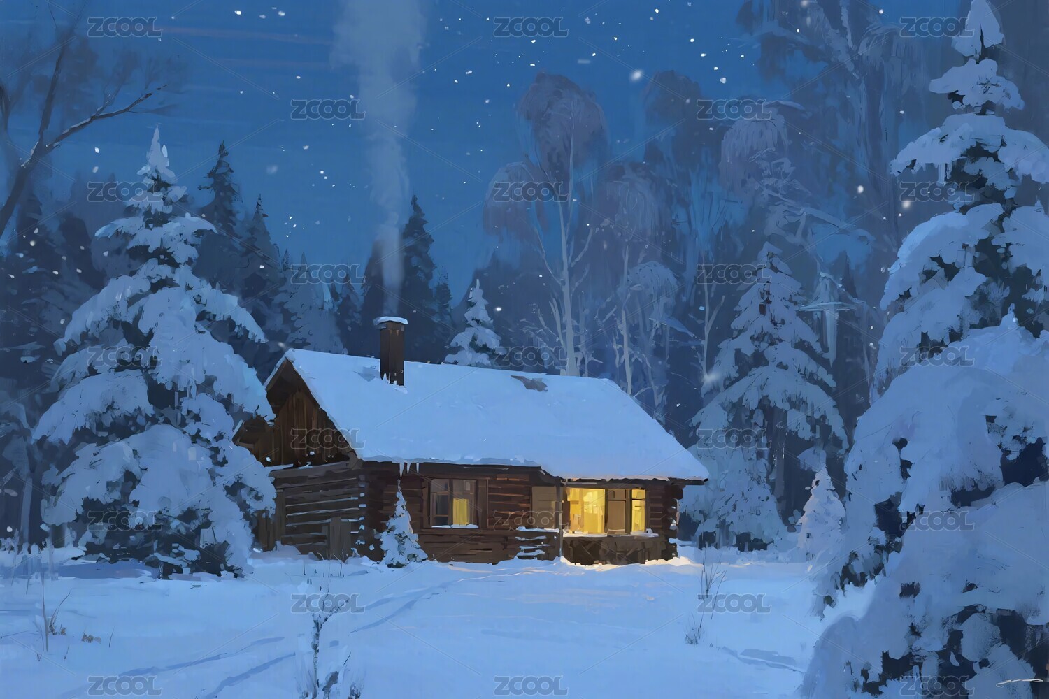 小木屋,雪景,树枝,积雪,森林,冬日,雪地,木屋,树木,丛雪