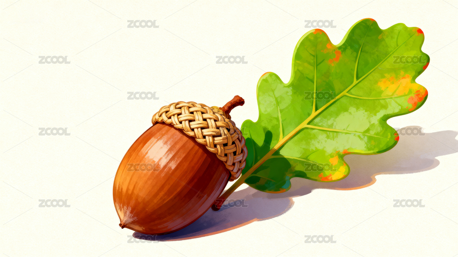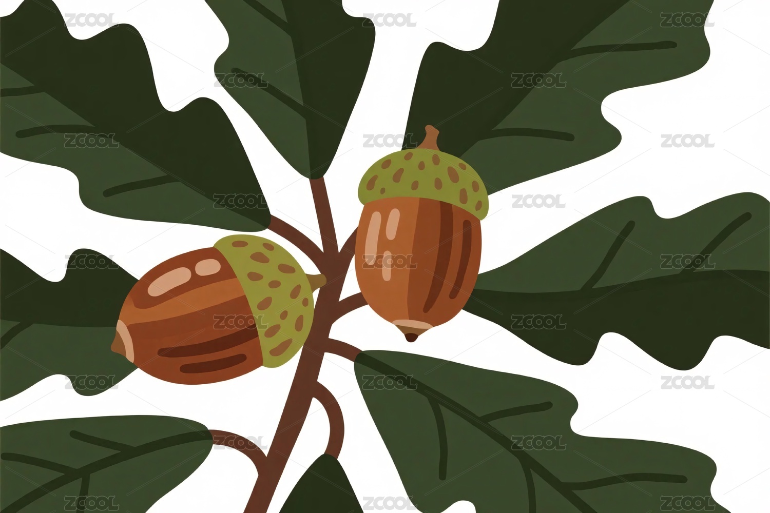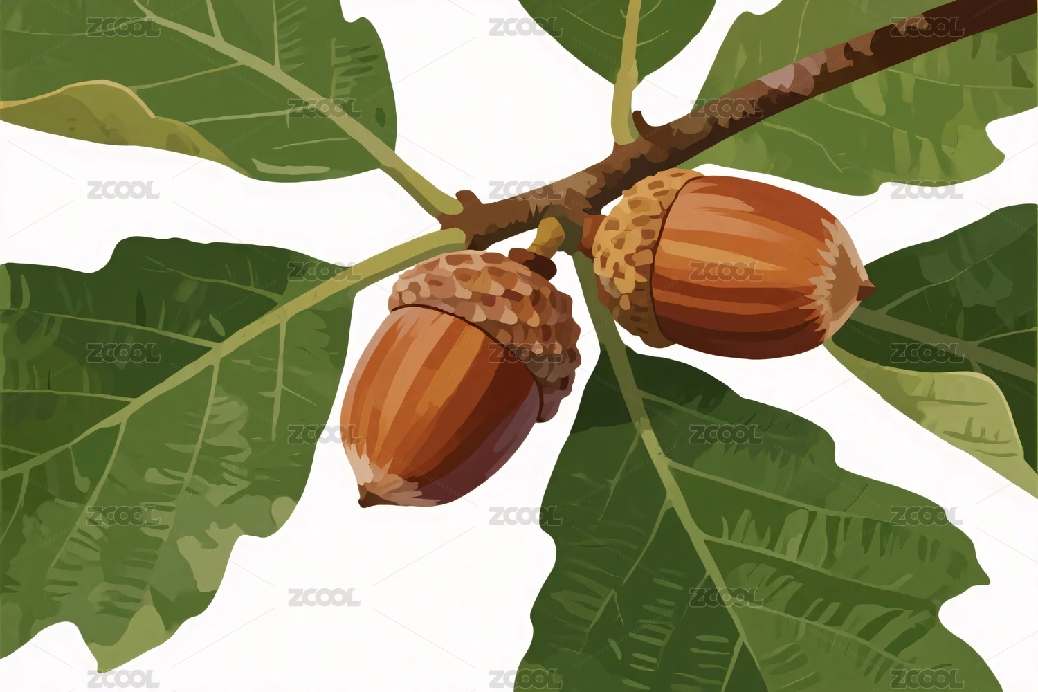 橡子与绿叶插画