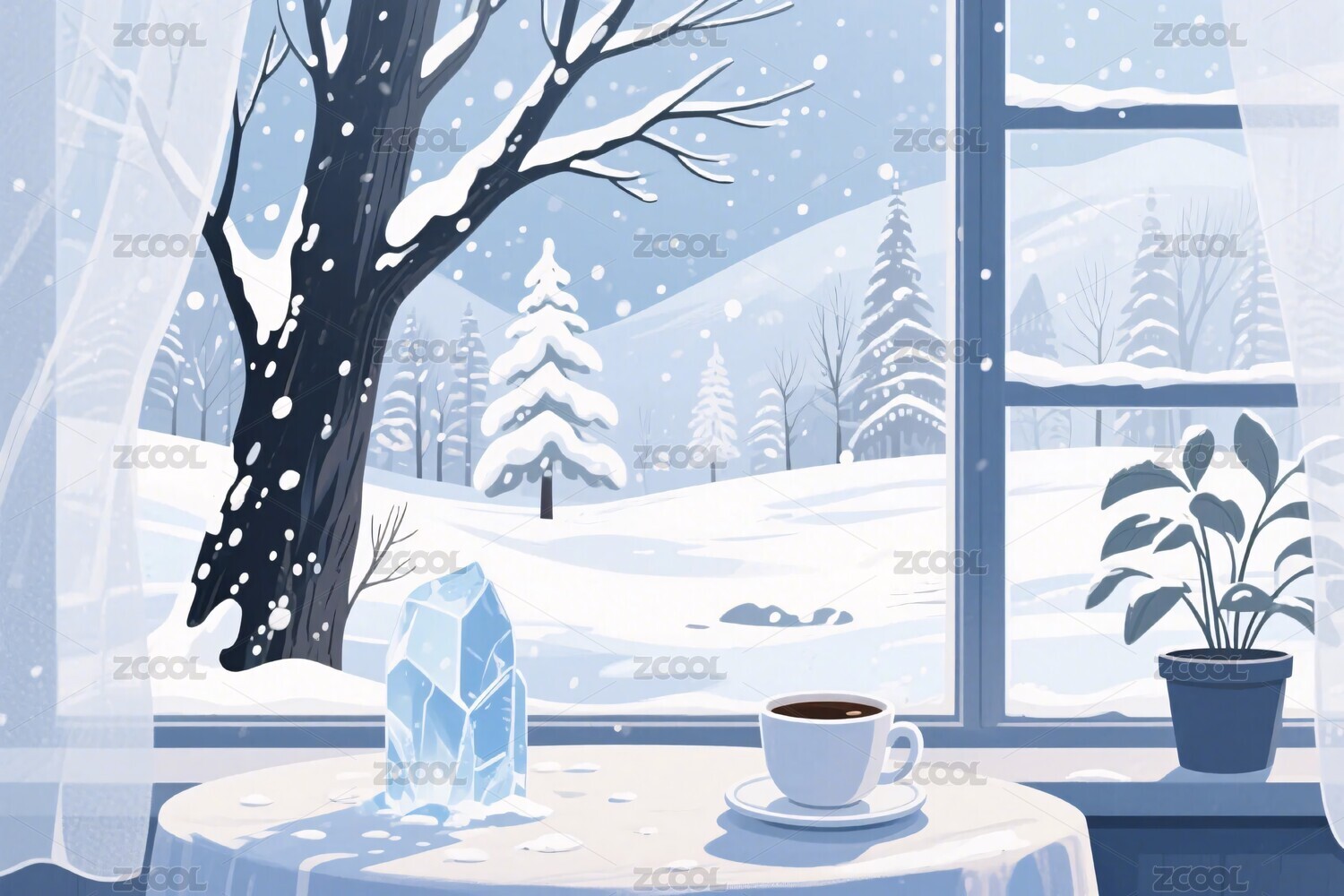 窗户,杯子,热饮,雪景,冬日,圣诞树,室内,插画,矢量,冬季