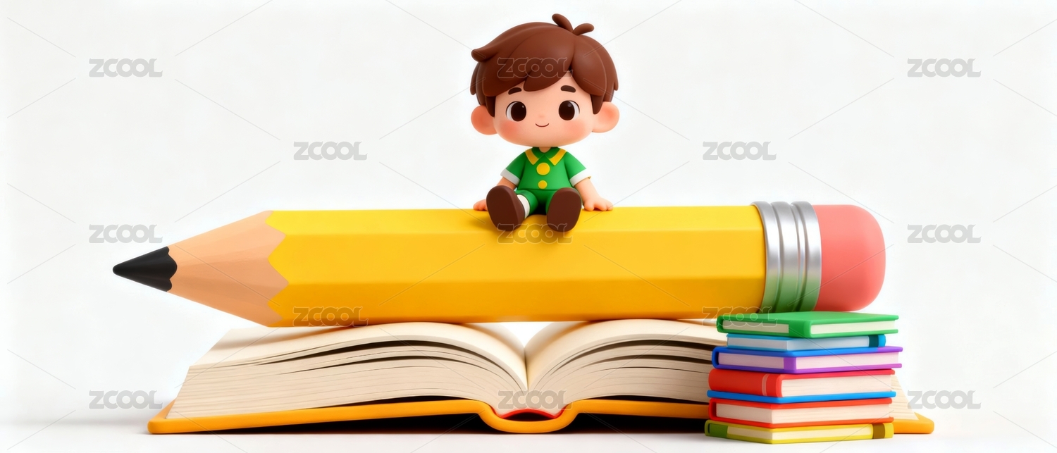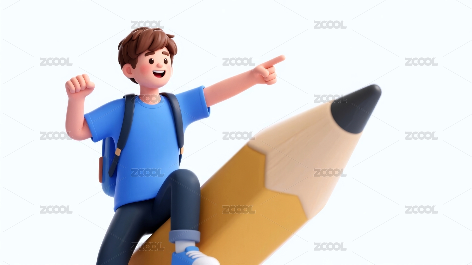 男孩,铅笔,指向,书包,快乐,微笑,卡通,创意,梦想,学习