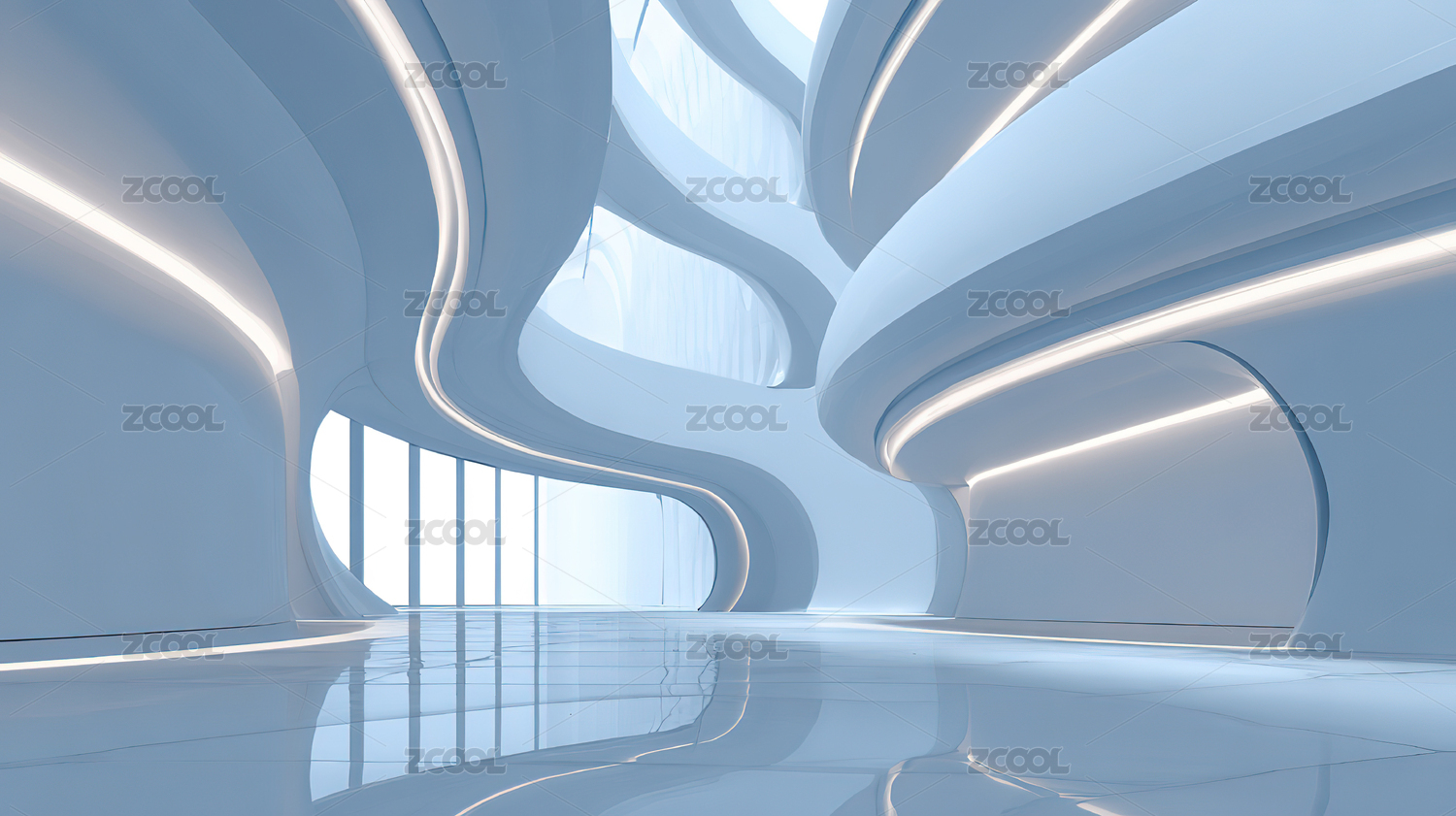 地面,现代,设计,玻璃,曲线,白色,简约,弧形,反射,空间