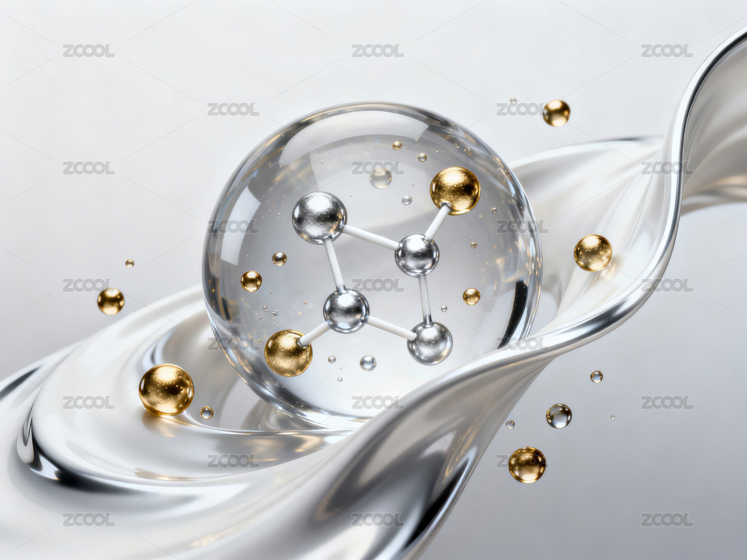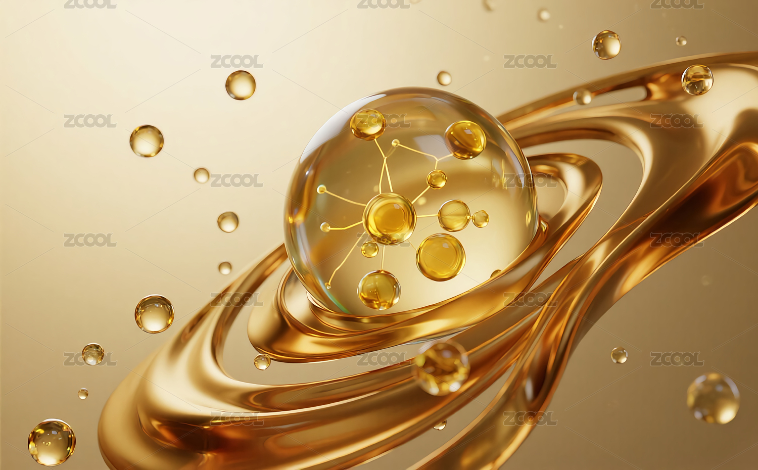 分子,液体,透明,球体,金色,科技感,抽象,艺术,化学,结构