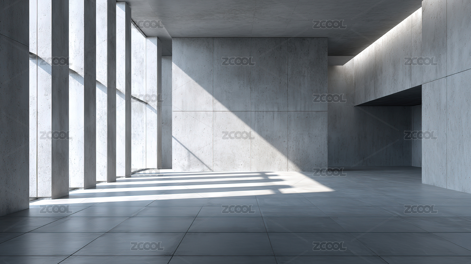 光影交错的混凝土空房间