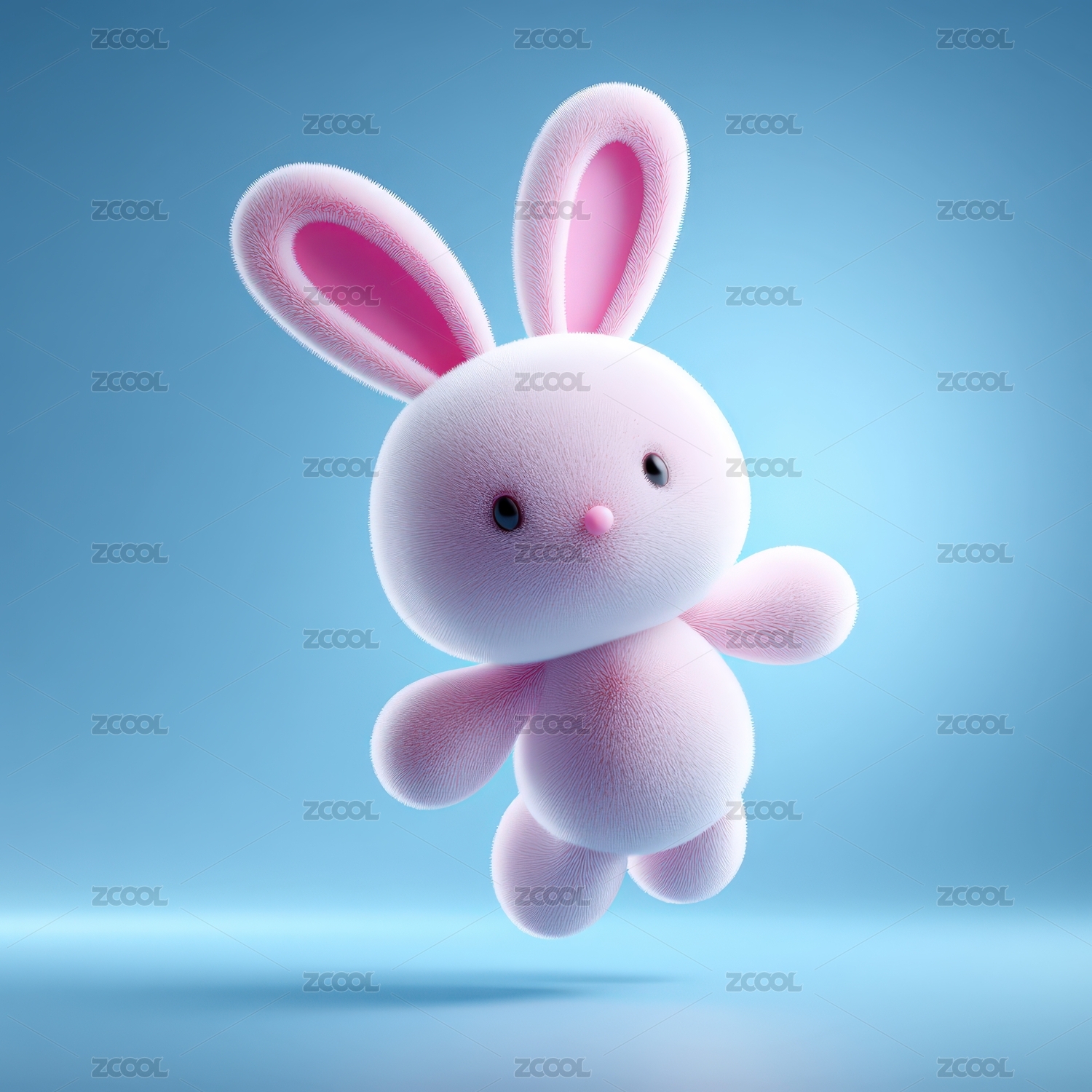 一只白兔特写镜头有粉红色的耳朵和白色的身