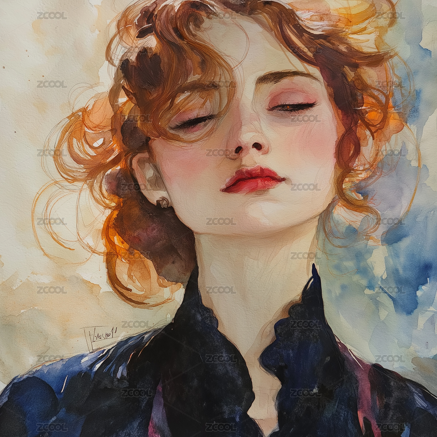 水彩画,魅力,女性,人物,插画,女人,美丽