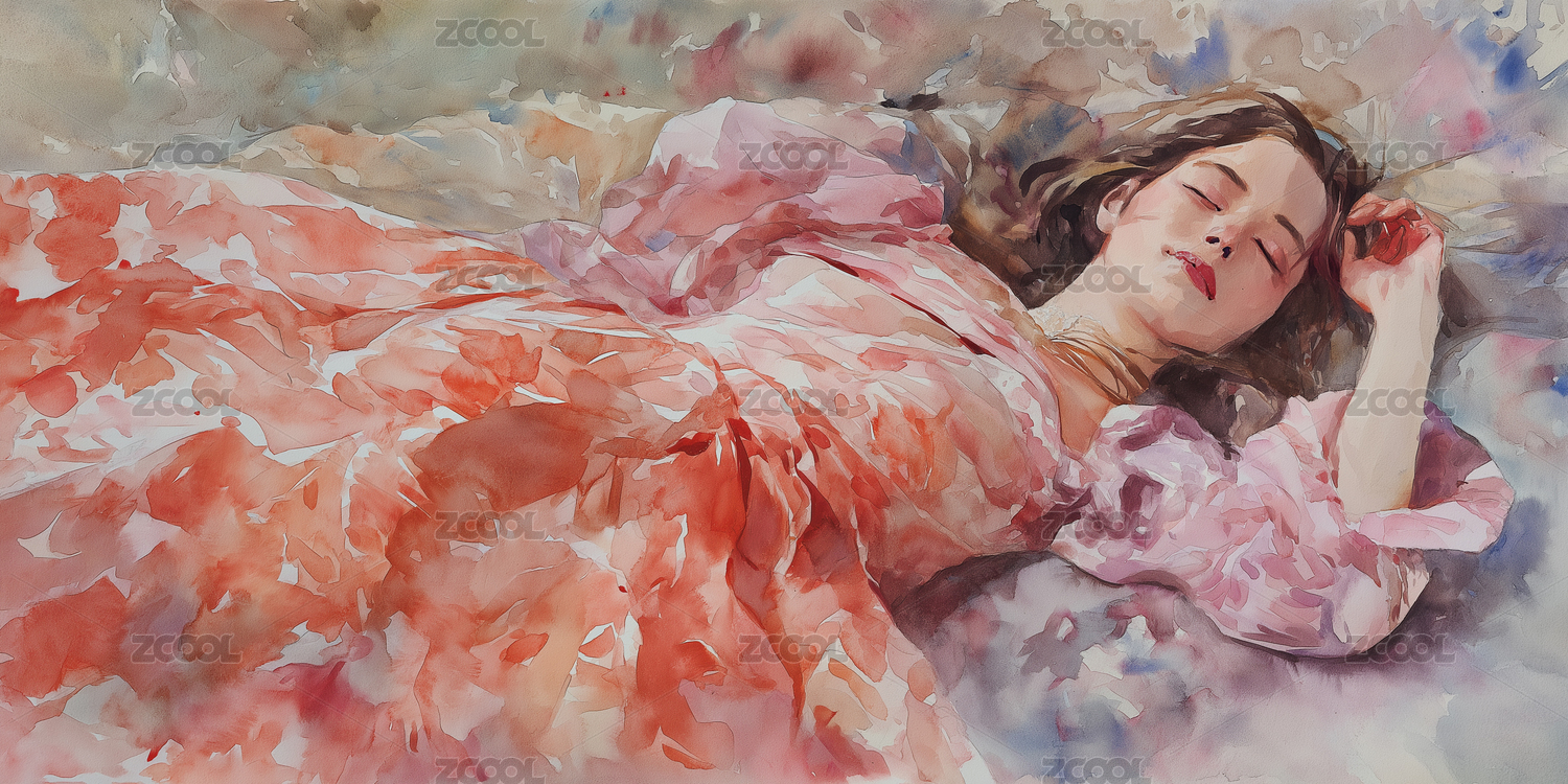 美丽,迷人,女性,水彩画,人物,插画,美女,女人,美,水彩