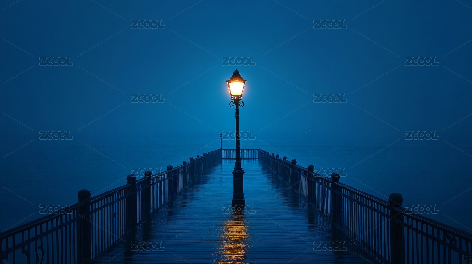 夜晚海堤孤独灯影