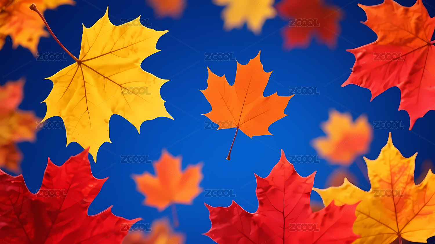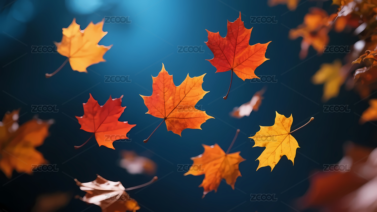多彩枫叶飘落蓝背景