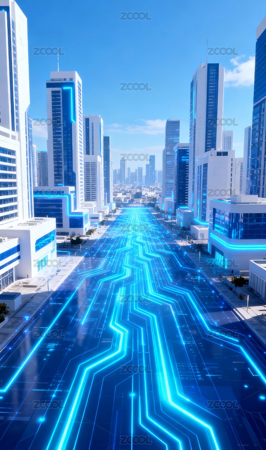 蓝色商务科技未来感光效汇聚城市建筑主视觉