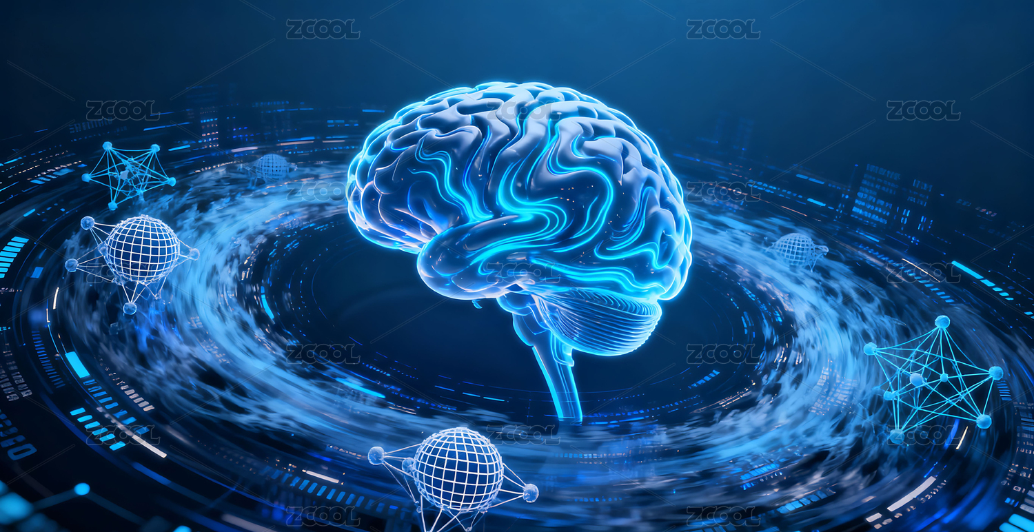 蓝色商务科技医疗人工智能大脑主视觉背景