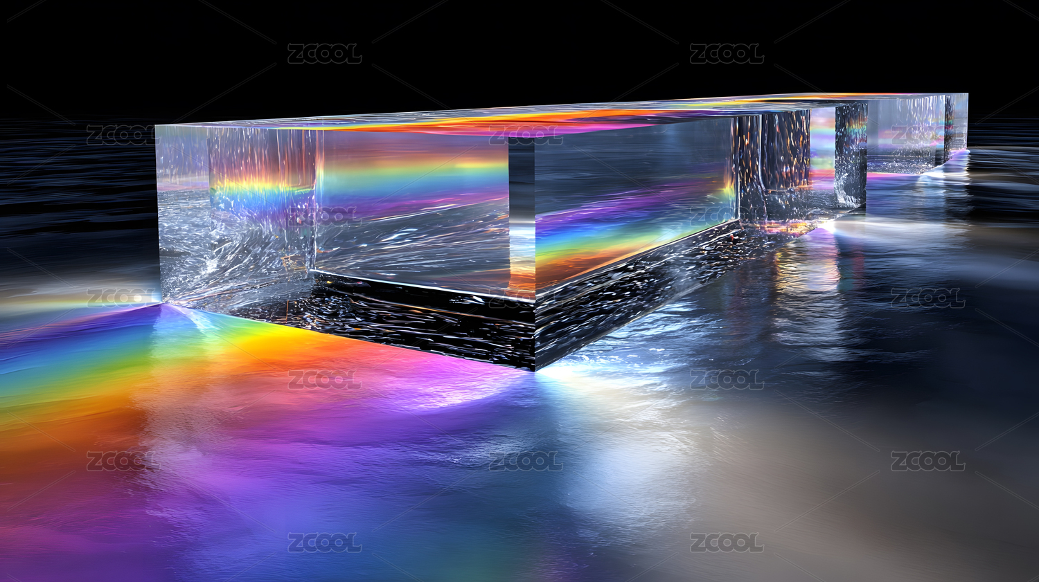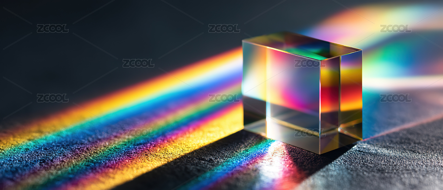 透明立方体折射彩虹光带